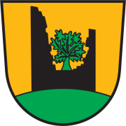 Gemeindewappen: In goldenem Schild auf grünem Berg eine schwarze Turmruine (Arnulfsfeste), aus der eine grüne Eiche hervorragt.