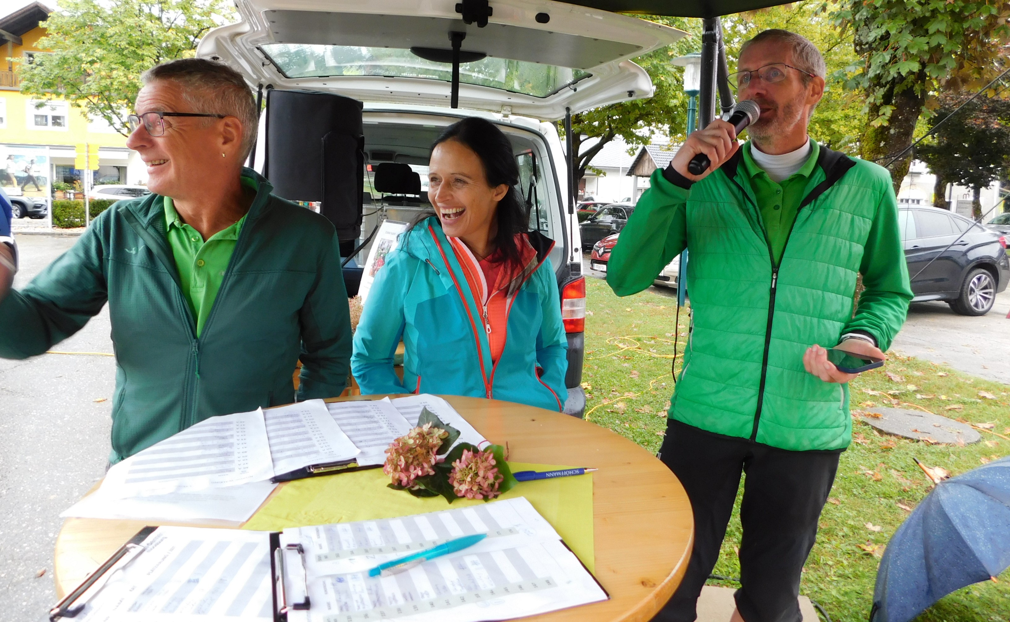 Nach Eintreffen von Bürgermeister Herbert Gaggl führte er schwungvoll einige Interviews nach dem Lauf und weiter durch diesen Vormittag. Die Läufer:innen konnten sich im Anschluss beim Gasthof zum Tschemernig stärken und das „Laufteam“ rund um Ursula Waltritsch und Dr. Max Heistinger ermittelten die Gewinner:innen und die erlaufene Gesamtrundenzahl. Die Zuseher:innen konnten sich die Wartezeit durch den Kauf von Losen für die Tombola sowie die Teilnahme am Schätzspiel, für das die Künstlerin Dagmar Helbig ein Bild gespendet hatte.