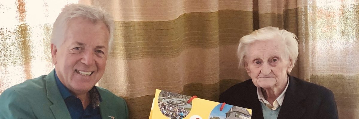Bürgermeister Herbert Gaggl stellte sich mit einem Geschenk ein und gratulierte herzlich. „Ich wünsche Josef Jaritz alles Gute, vor allem viel Gesundeit“, so der Bürgermeister.