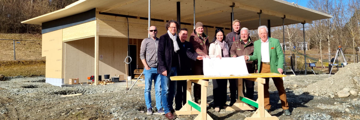 Auf der Baustelle läuft alles nach Plan, die betrauten Firmen machen perfekte Arbeit. Bgm LAbg Herbert Gaggl, Vbgm Astrid Brunner und Vbgm Roland Gruber machten sich bei der Baubesprechung ein Bild vom Baufortschritt und freuen sich schon auf die Fertigstellung. Die Eröffnung ist für den kommenden Juni geplant.
