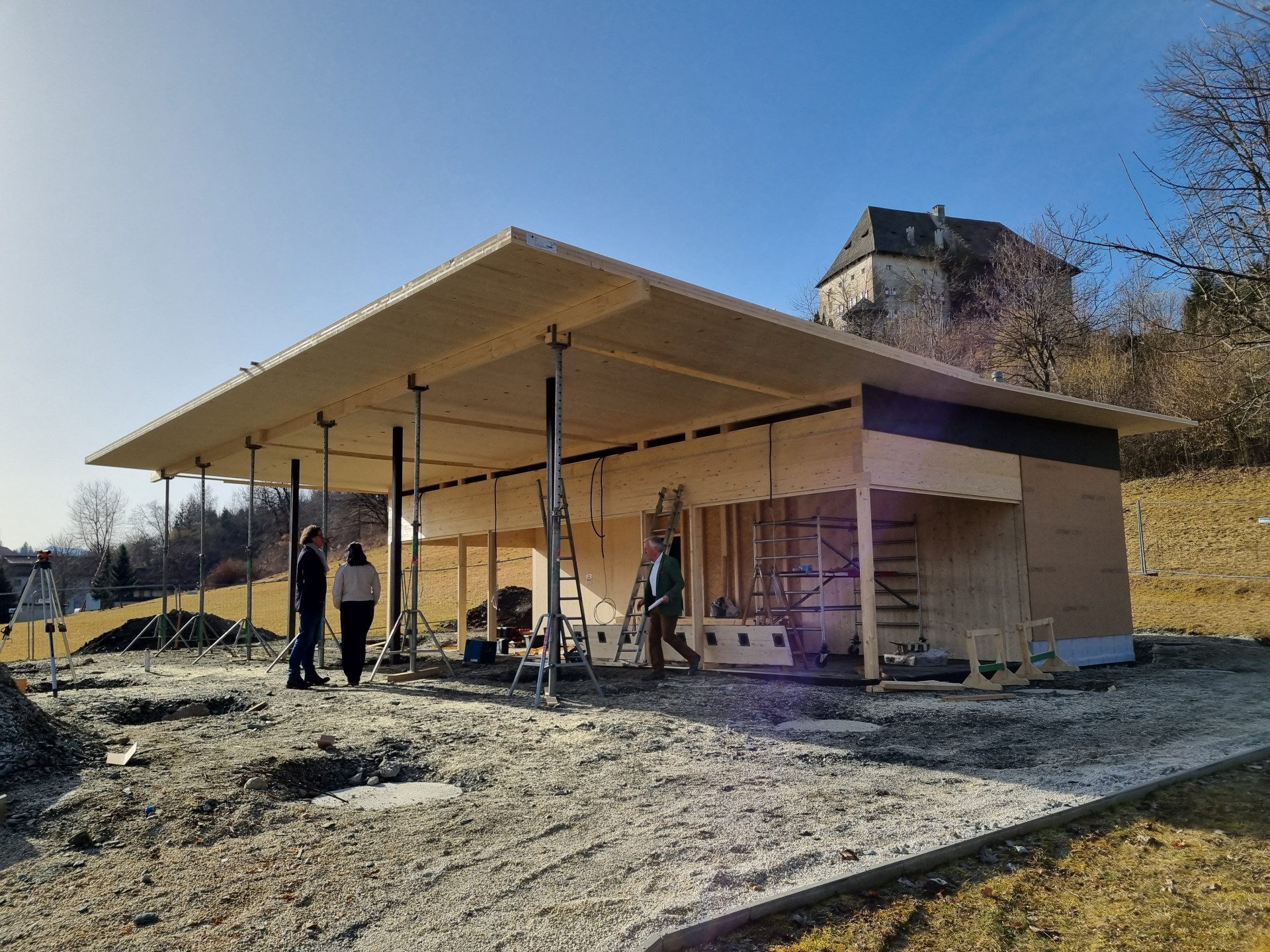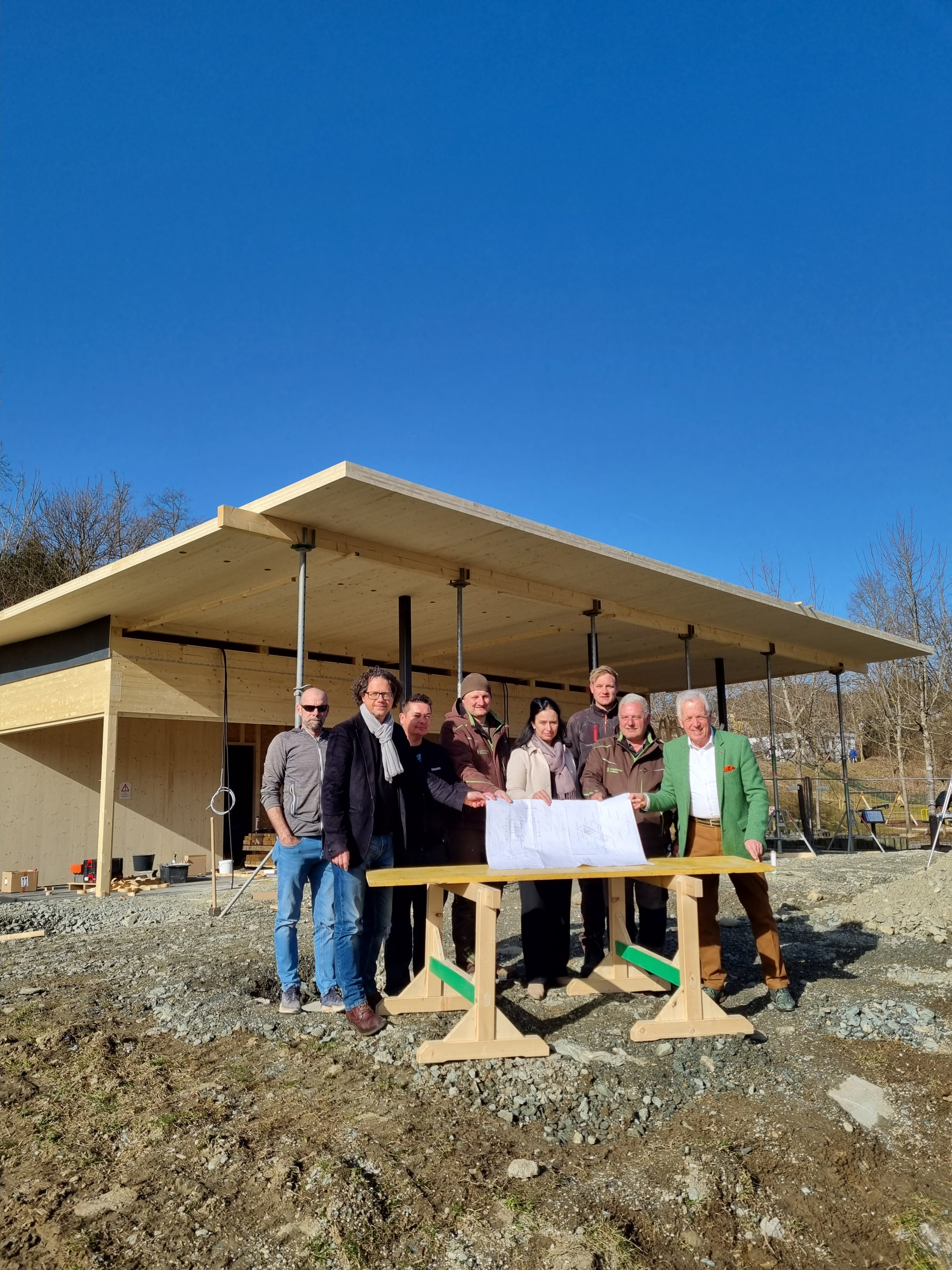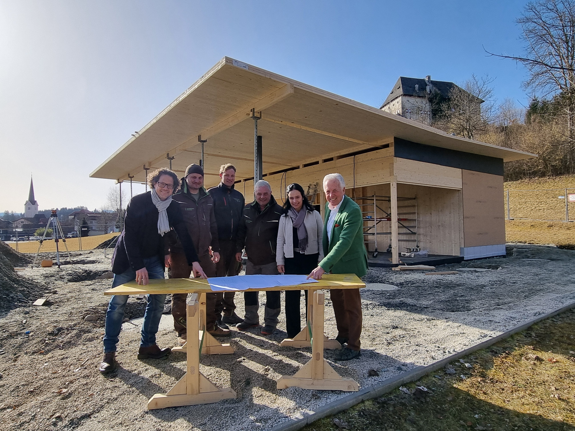 Auf der Baustelle läuft alles nach Plan, die betrauten Firmen machen perfekte Arbeit. Bgm LAbg Herbert Gaggl, Vbgm Astrid Brunner und Vbgm Roland Gruber machten sich bei der Baubesprechung ein Bild vom Baufortschritt und freuen sich schon auf die Fertigstellung. Die Eröffnung ist für den kommenden Juni geplant.