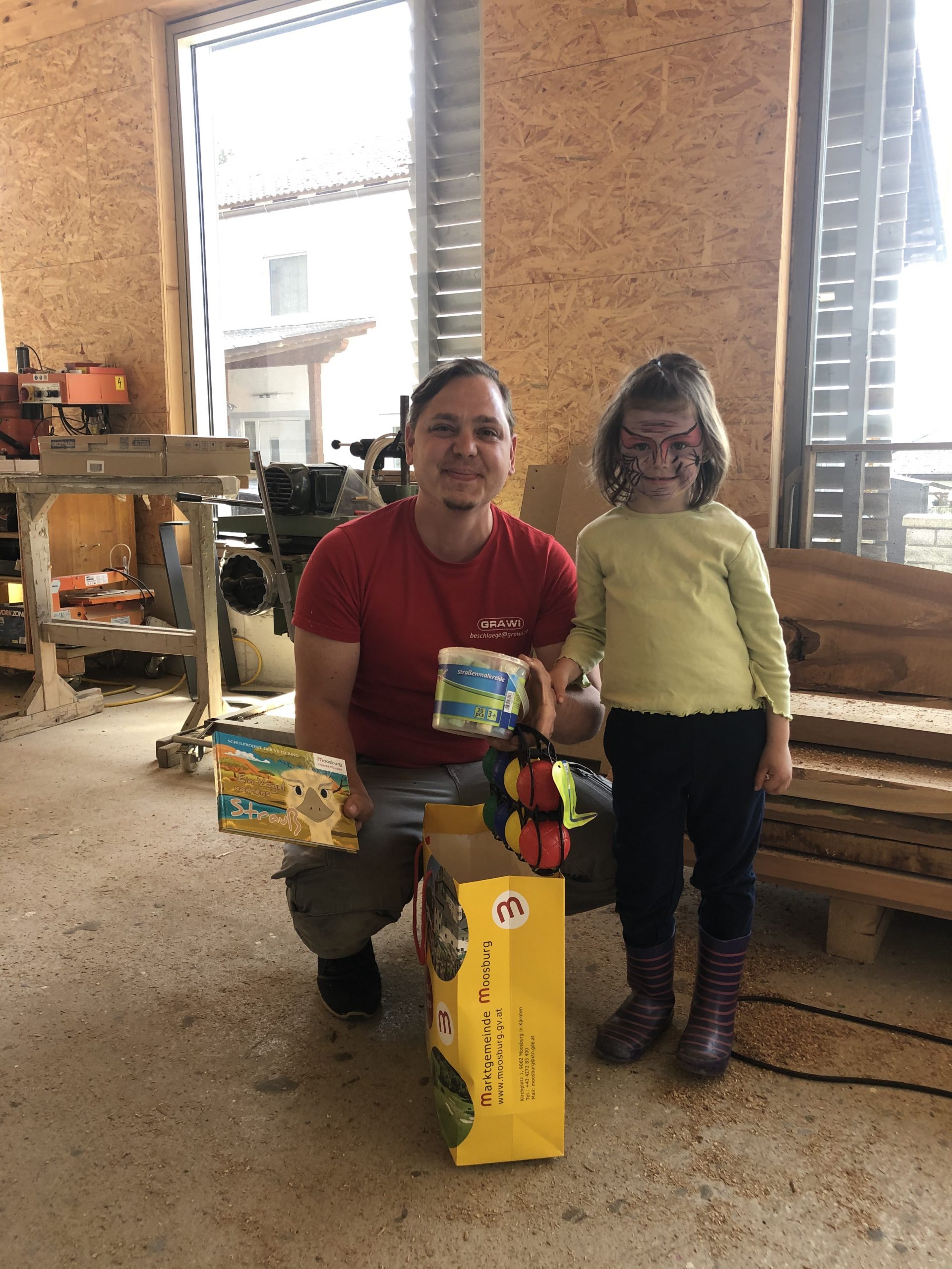 „Ich möchte mich bei allen Kindern sehr herzlich für die vielen schönen Zeichnungen bedanken, die ihr mir geschickt oder vorbei gebracht habt! Es hat mich wirklilch gefreut, dass so viele von euch meiner Bitte gefolgt sind – das war für mich eine richtige Oster-Überraschung!“ sagt Bürgermeister Herbert Gaggl. Die kleinen Künstlerinnen und Künstler waren ihrerseits auch begeistert von den Überraschungen und Geschenken, die sie dafür erhalten haben. Besonders die Straßenmalkreide wurde mit Begeisterung in Empfang genommen. Wahrscheinlich gibt es da und dort in Moosburg schon wieder neue Kunstwerke zu bestaunen– diesmal auf Asphalt?