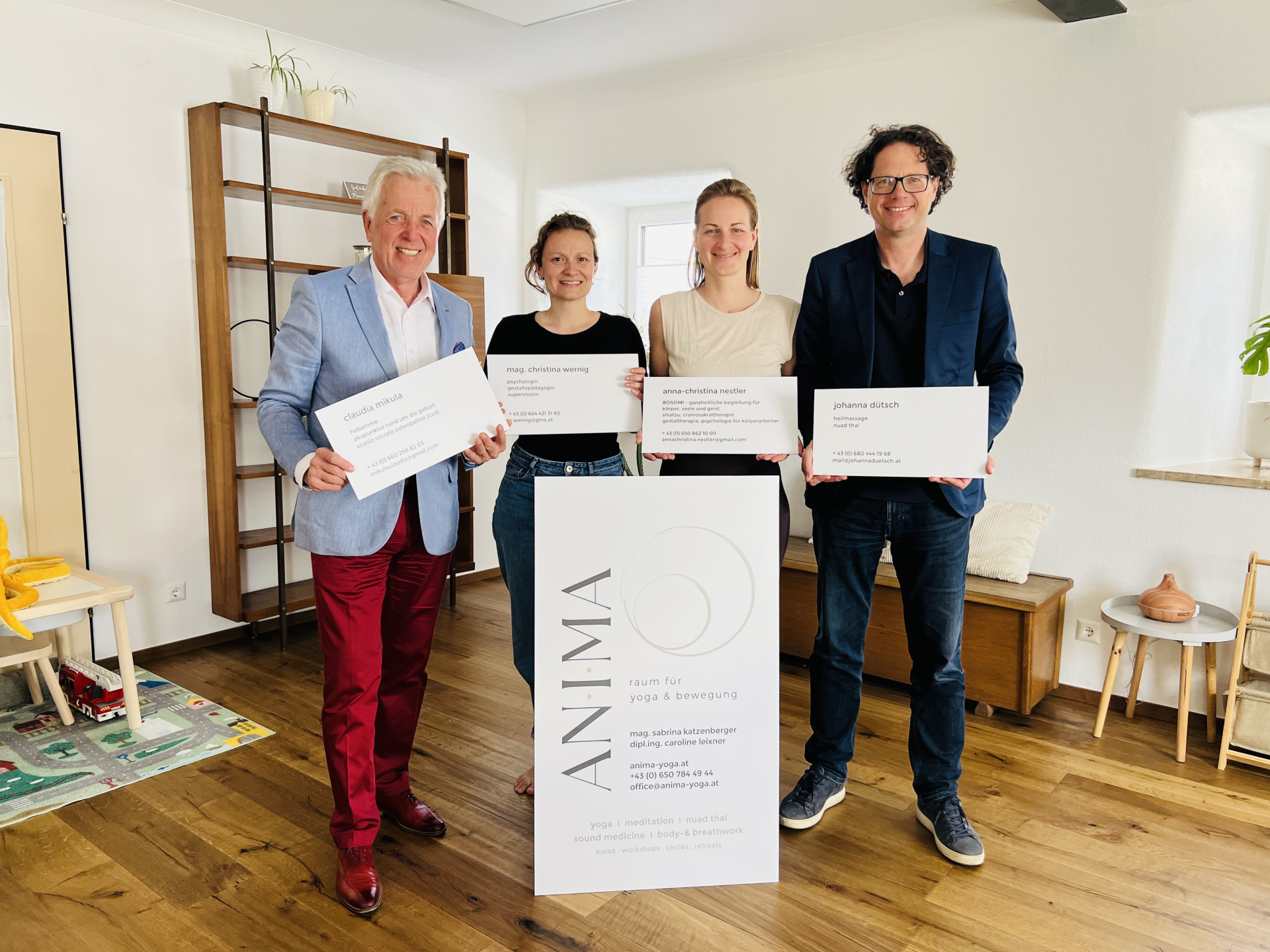 Ab sofort werden im ANIMA Moosburg die wöchentlichen Yogakurse durch Angebote aus den Bereichen der Psycho- und Körpertherapie ergänzt. Vier Therapeutinnen erweitern das Team und stehen mit ihrer Expertise aus den Bereichen Heilmassage, Shiatsu, Nuad Thai und Psychologie für einen ganzheitlichen Therapieansatz. Sogar eine Hebamme hat sich im neuen Therapieraum angesiedelt, um alle Anliegen rund um Schwangerschaft und Geburt zu behandeln.