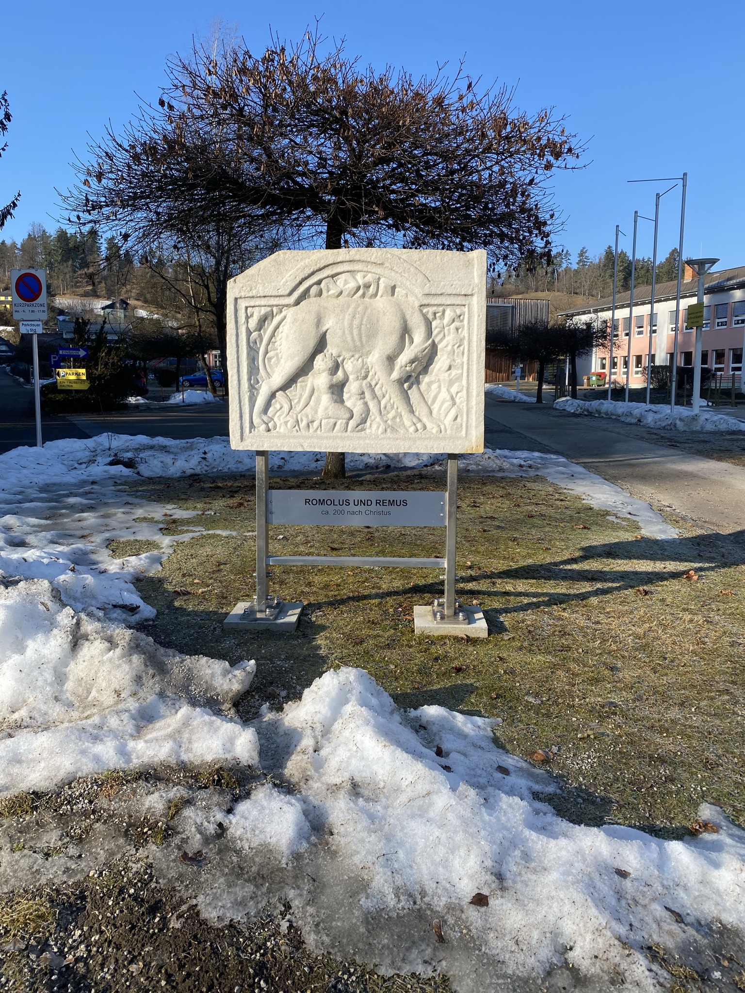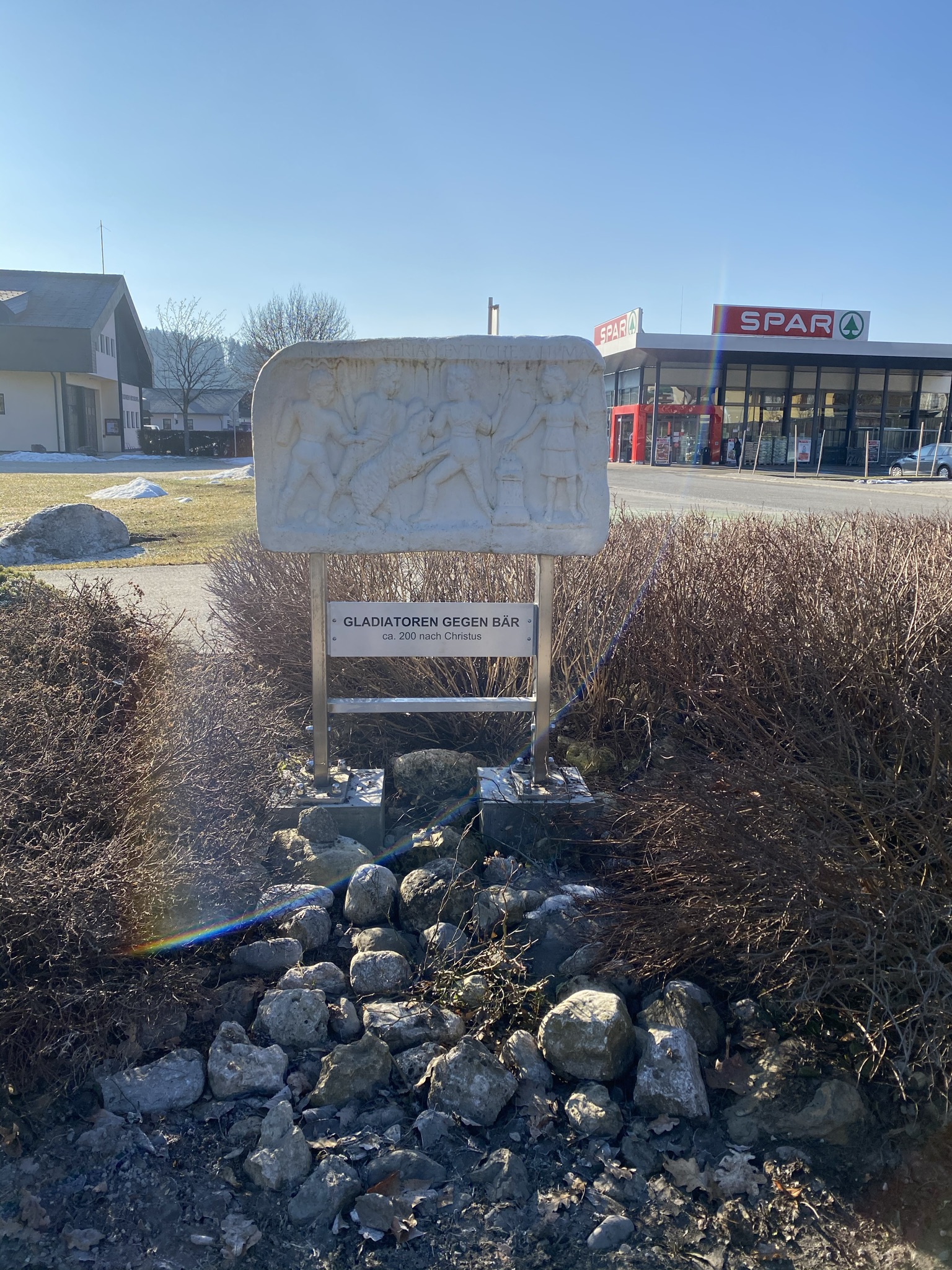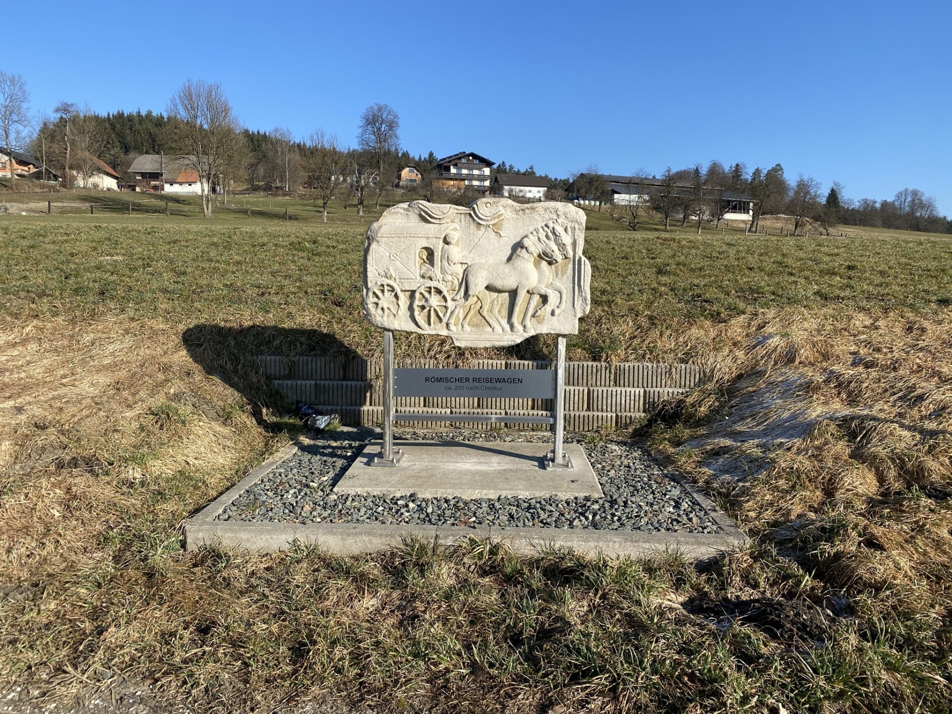 Entlang der alten Römerstraße in Moosburg wurden auf Initiative von Max Goritschnig in Zusammenarbeit mit dem Karolingerverein, Präsident Dr. Hermann Leber und der Marktgemeinde Moosburg Steine, Reliefs und Skulpturen, aufgestellt.