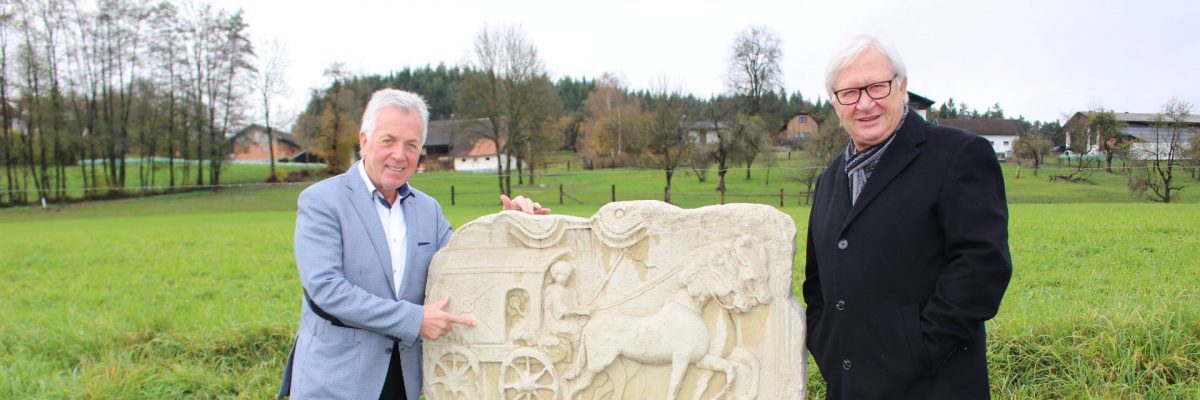 Foto: Bgm Herbert Gaggl und Max Goritschnig beim Römerstein in Seigbichl