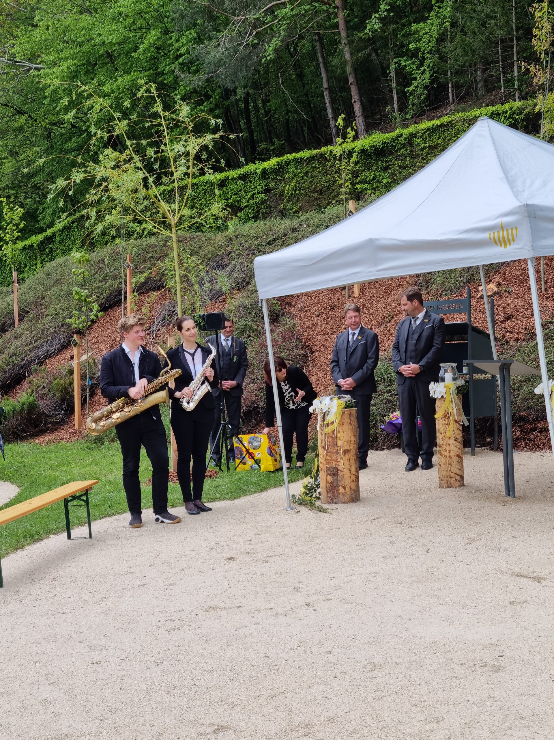 Mit der Errichtung des Friedensforstes wurde dem Wunsch vieler Gemeindebürger*innen entsprochen. Der Trend zu Naturbestattungen steigt und löst auch die Frage der Grabpflege, wenn Verwandte nicht so oft das Grab besuchen können. Auf den Bänken im Friedensforst kann man verweilen und seiner lieben Verstorbenen gedenken.
