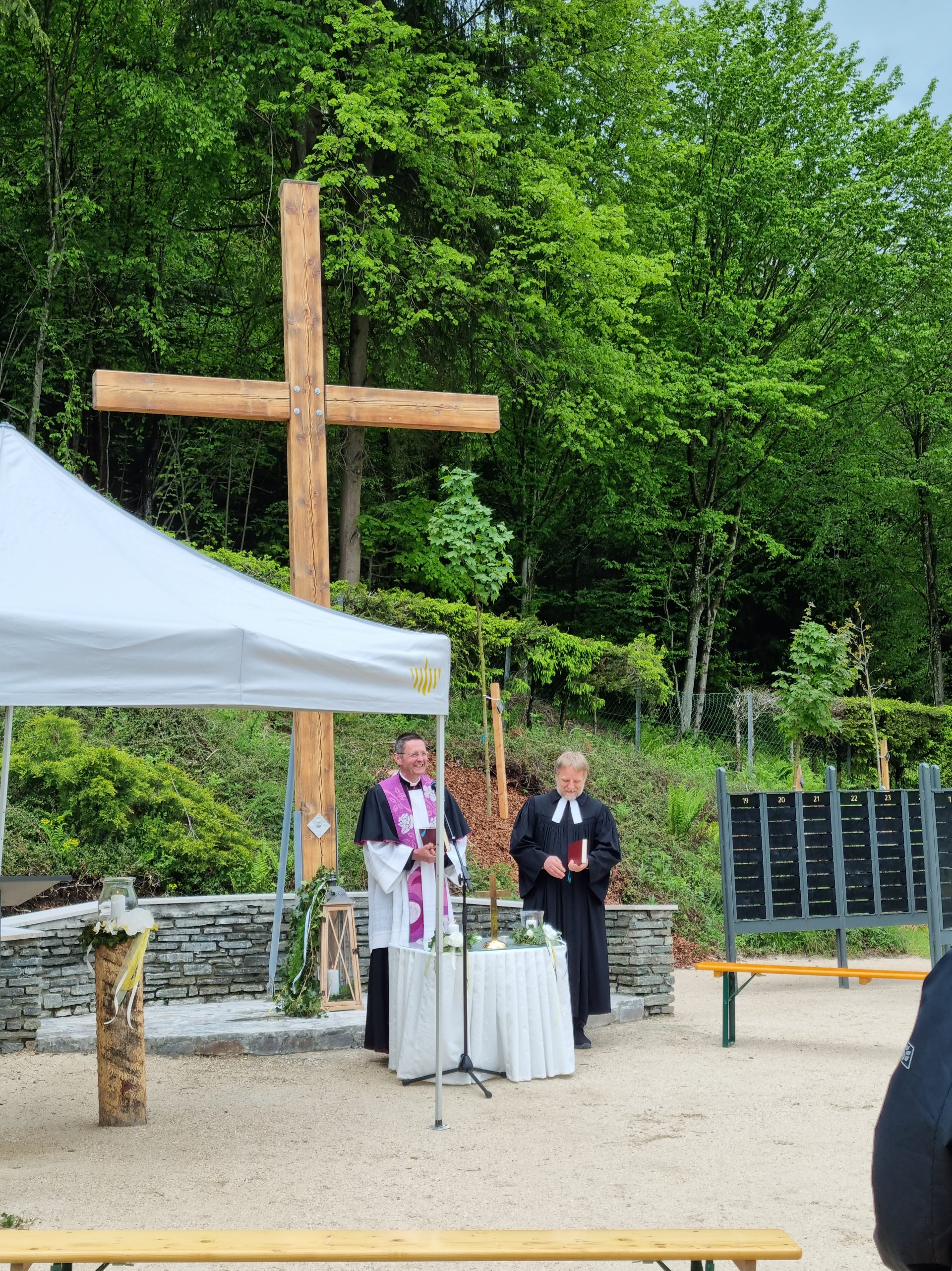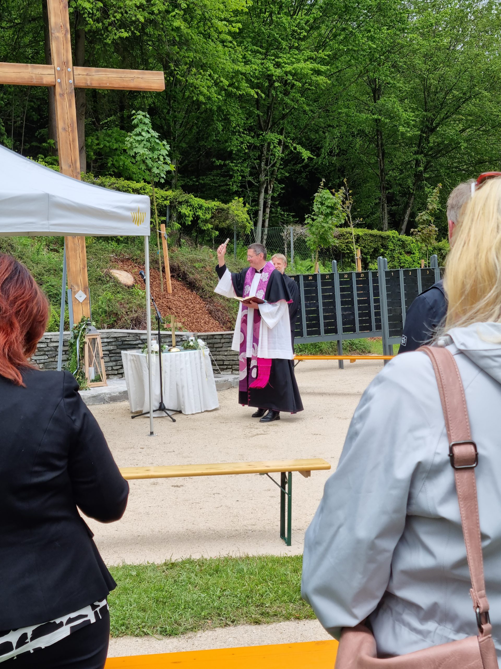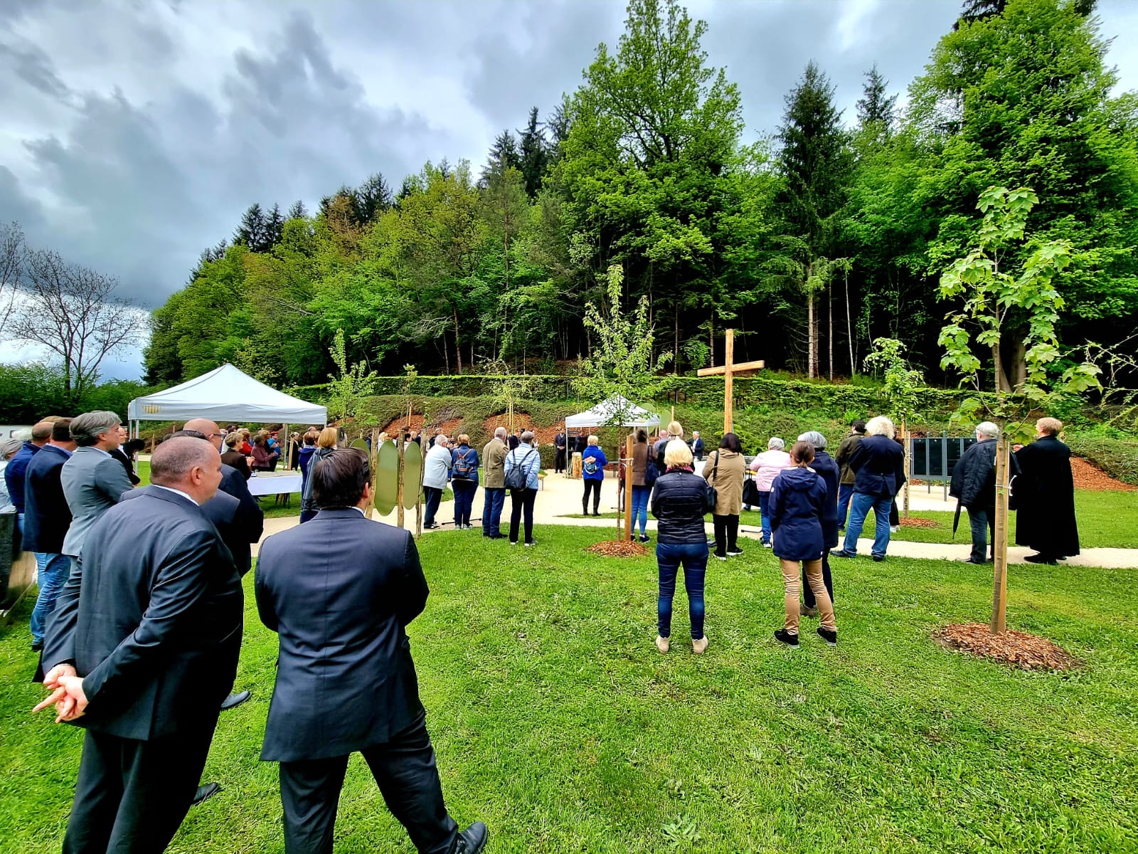 Am 12. Mai wurde der neu errichtete Friedensforst im Bereich unseres Waldfriedhofes eröffnet und durch Dompfarrer Dr. Peter Allmaier und Mag. Martin Madrutter gesegnet. In nur 10 Monaten konnte dieses Projekt gemeinsam mit der Bestattung Kärnten umgesetzt werden. Die Mitarbeiter des Wirtschaftshofes und der Bestattung haben die Neugestaltung gemeinsam vorgenommen: Es wurden alte Bäume gefällt und 38 neue gepflanzt, zusätzliche Wege angelegt, das Holzkreuz saniert und am Platz neue Steine verlegt. Der Vorplatz wurde ausgestaltet und mit Rednerpult und einem Podest für die Urnen komplettiert. In unserem Friedensforst gibt es Familienbäume und zwei Gemeinschaftsbäume: Kirsche, Apfelbaum, Buche, Ahorn, Eiche und Weide.