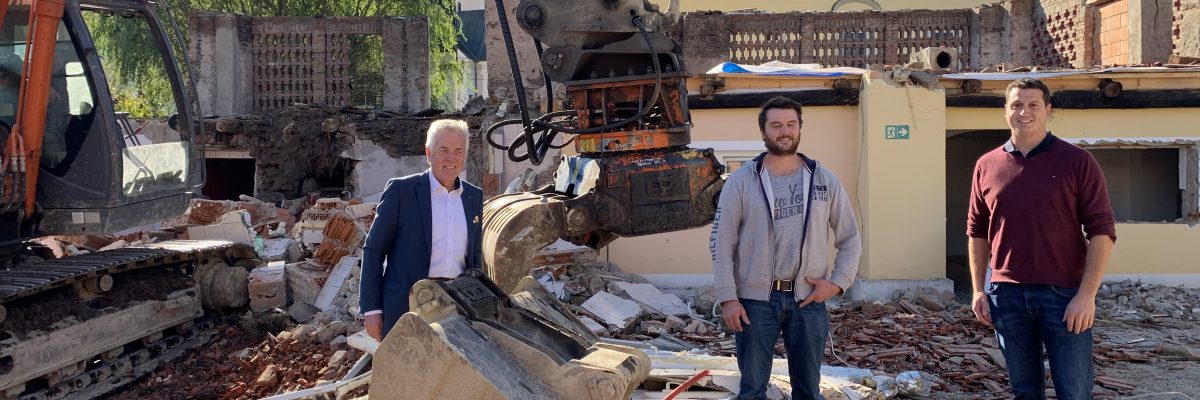 Die Abbrucharbeiten bereits bestehender Bauten haben begonnen. Bürgermeister Herbert Gaggl besuchte die Baustelle und holte sich Informationen der Firmenchefs ein