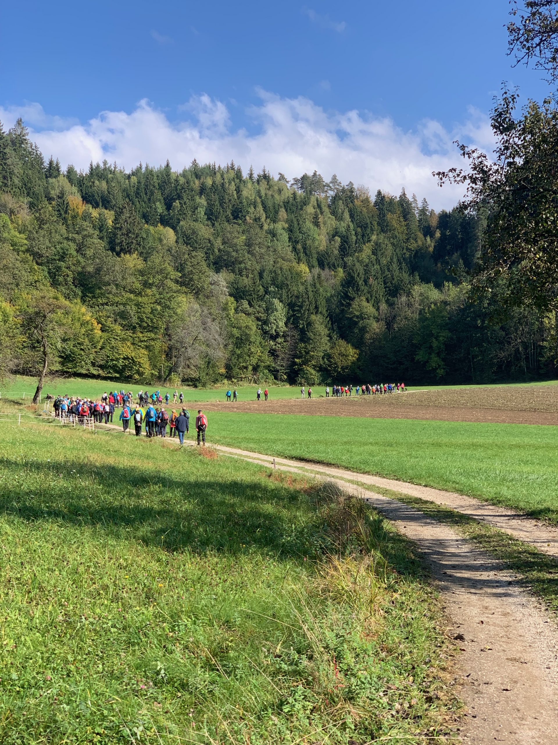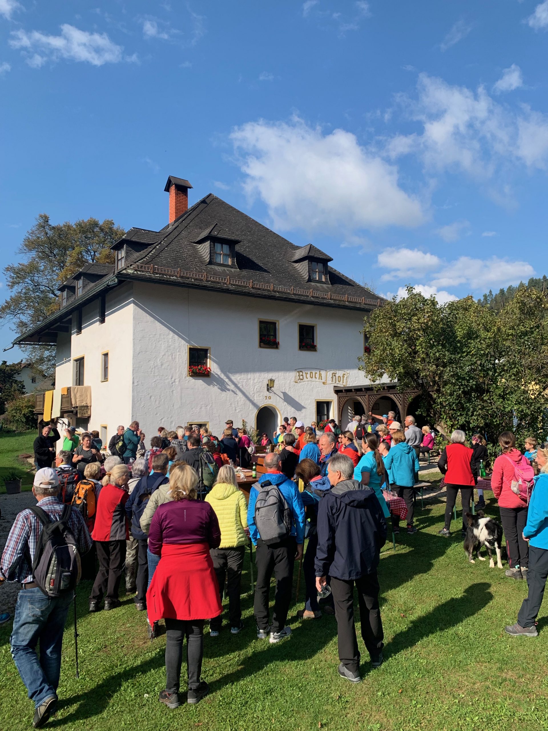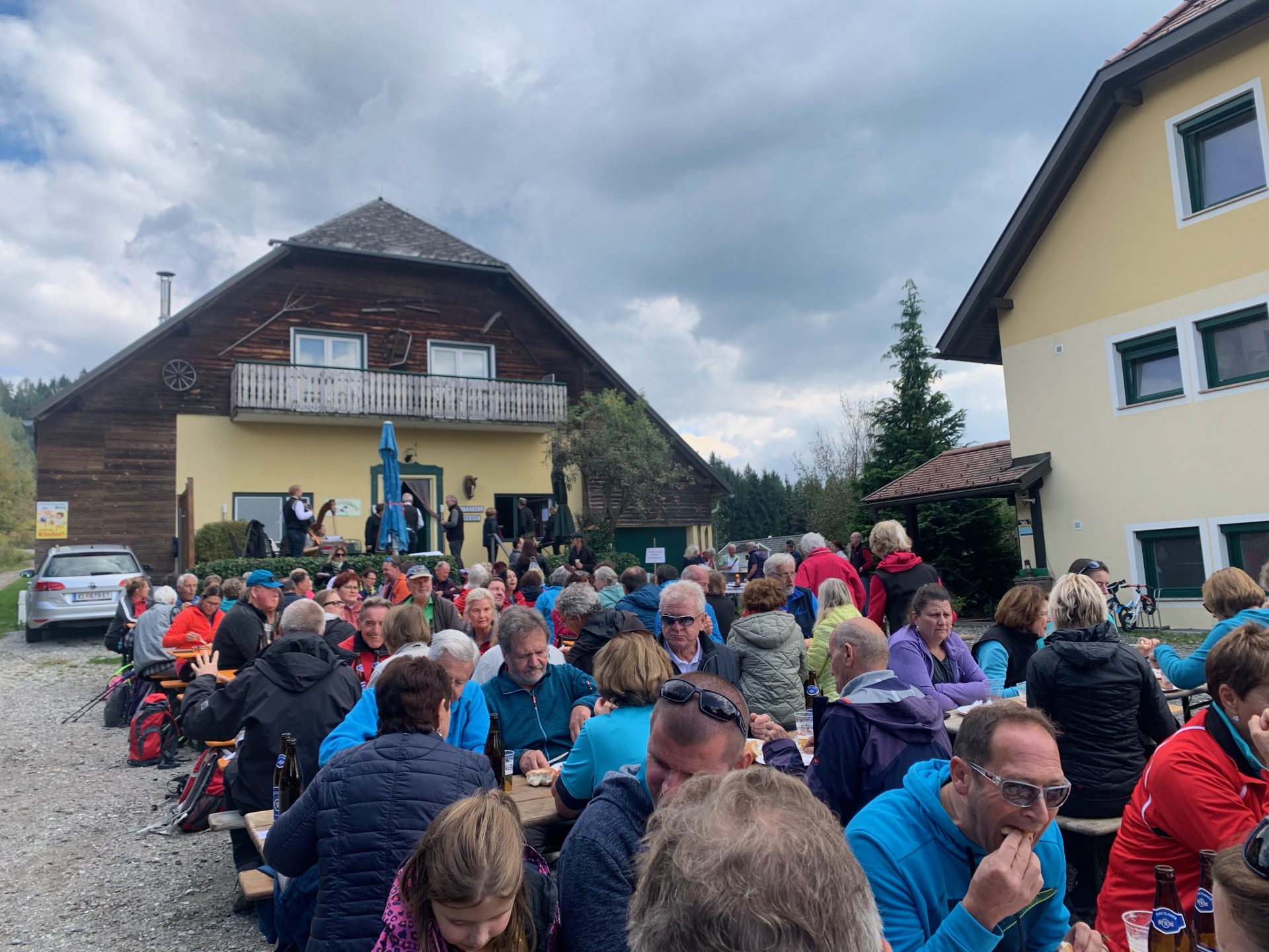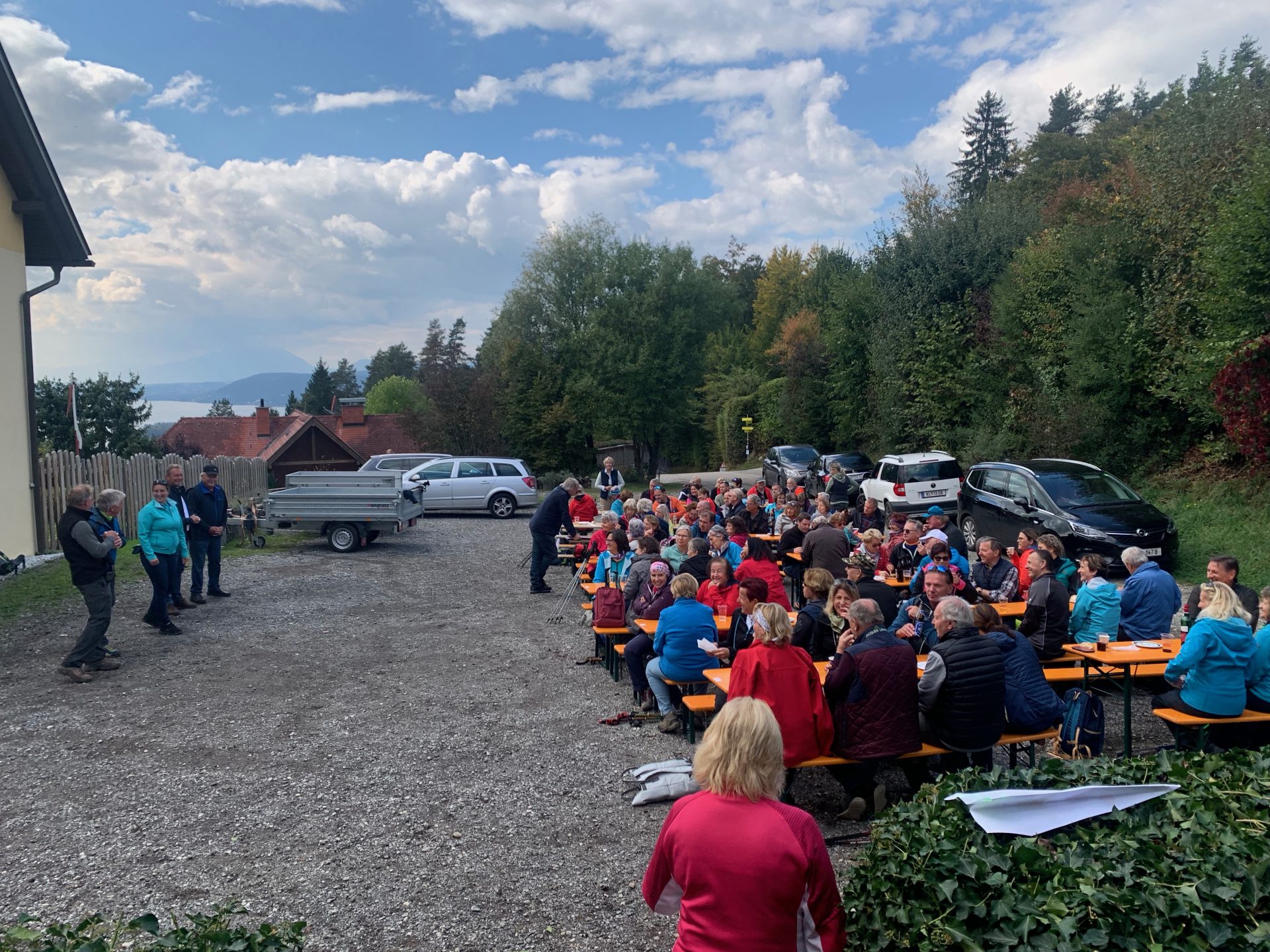 Bestes Wanderwetter begleitete die TeilnehmerInnen der 9. Sternwanderung auf den Pirkerkogel aus den drei Gemeinden Krumpendorf, Moosburg und Pörtschach am 9. Oktober. Die erste Etappe führte die Moosburger Gruppe über den Glücksparcours und den Weg der Stille zur Buschenschank Brock in Pörtschach, wo die anderen beiden Gruppen auch eintrafen. Erstmals in der neunjährigen Geschichte der Sternwanderung trafen dabei über 100 Wandersleute aufeinander. Nach der Labung beim Brockhof erzählte der Pörtschacher Historiker Peter Napetschnig so manches zur Geschichte des Hofes und dessen Umgebung. Die weitere Wanderung führte die große Gruppe dann zur nächsten Station auf den Pirkerkogel. Für die Mühen des Aufstieg wurde man doppelt belohnt – mit einem Bilderbuchausblick und mit einer Begegnung der besonderen Art: Gitarrenprofi Bulat Budaev verzauberte die Wandersleute mit einer musikalische Reise rund um den Globus. Bei der Endstation, dem Reiterhof Binz, gab es zum Abschluss noch flotte Hausmusik und eine köstliche Stärkung von Karin Binz und dem Verein Pritschitz Aktiv. Die Bürgermeisterin und die beiden Bürgermeister der drei Teilnehmergemeinden bedankten sich bei den TeilnehmerInnen und luden bereits ein zur 10. Jubiläumswanderung im Jahr 2022. Ein großes Danke an Christian Berg vom Verein Pritschitz Aktiv für die Organisation dieser tollen Veranstaltung.