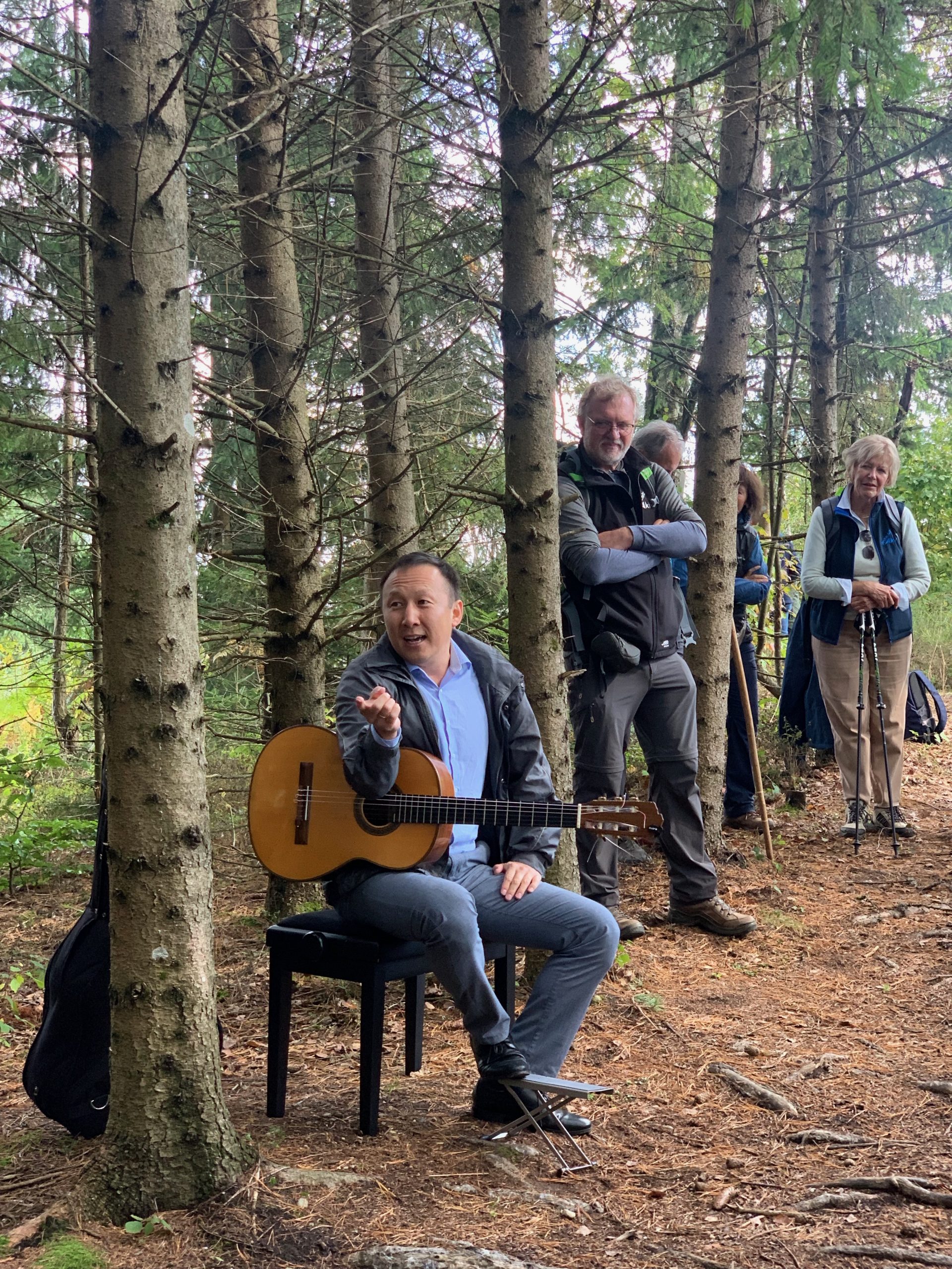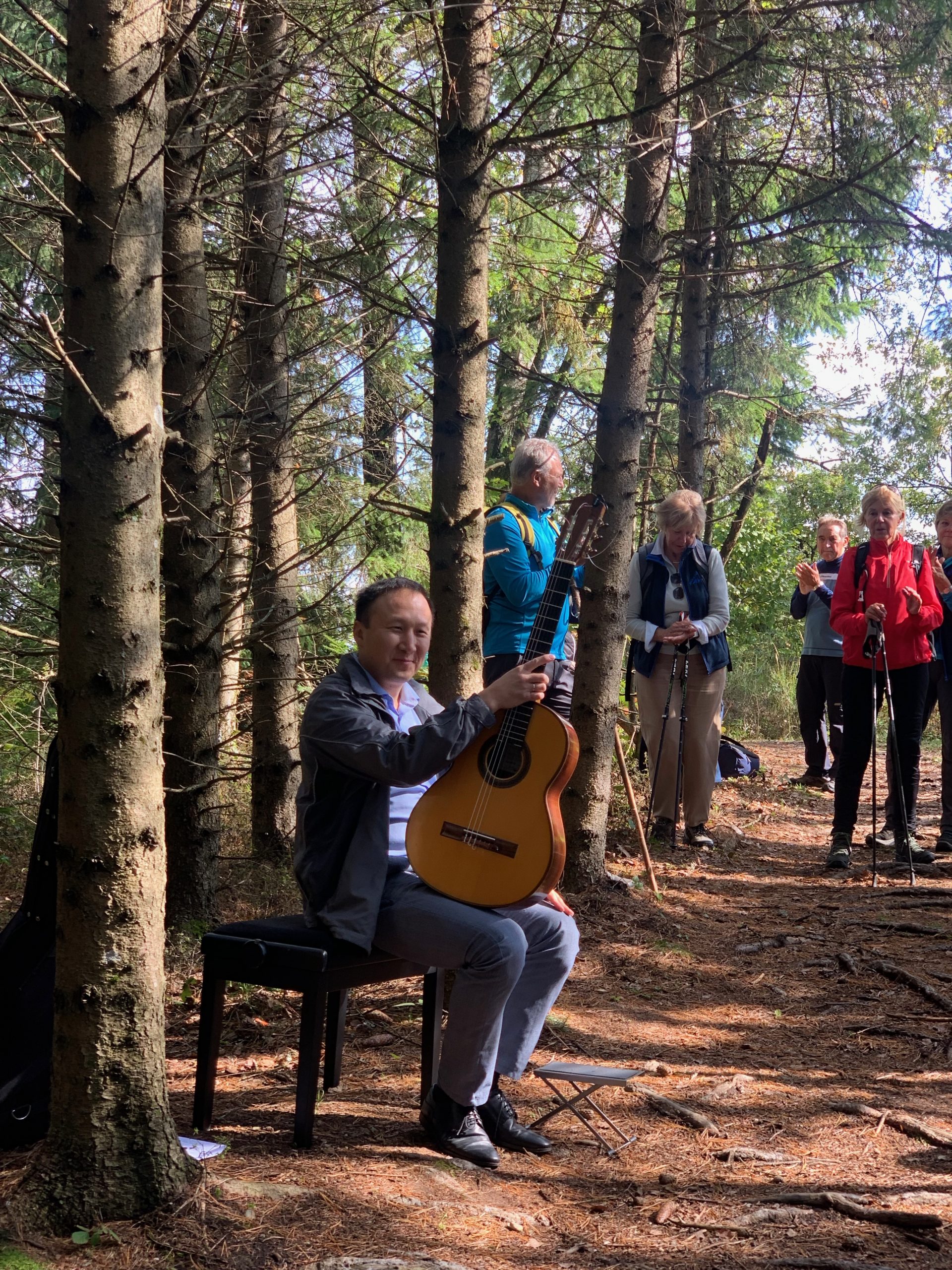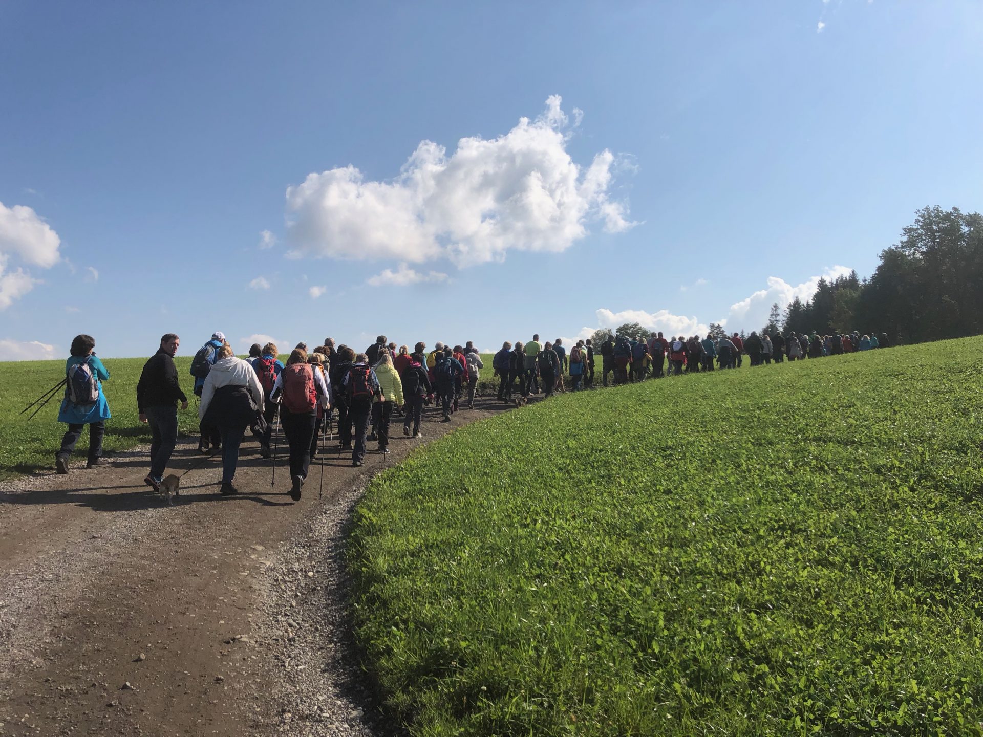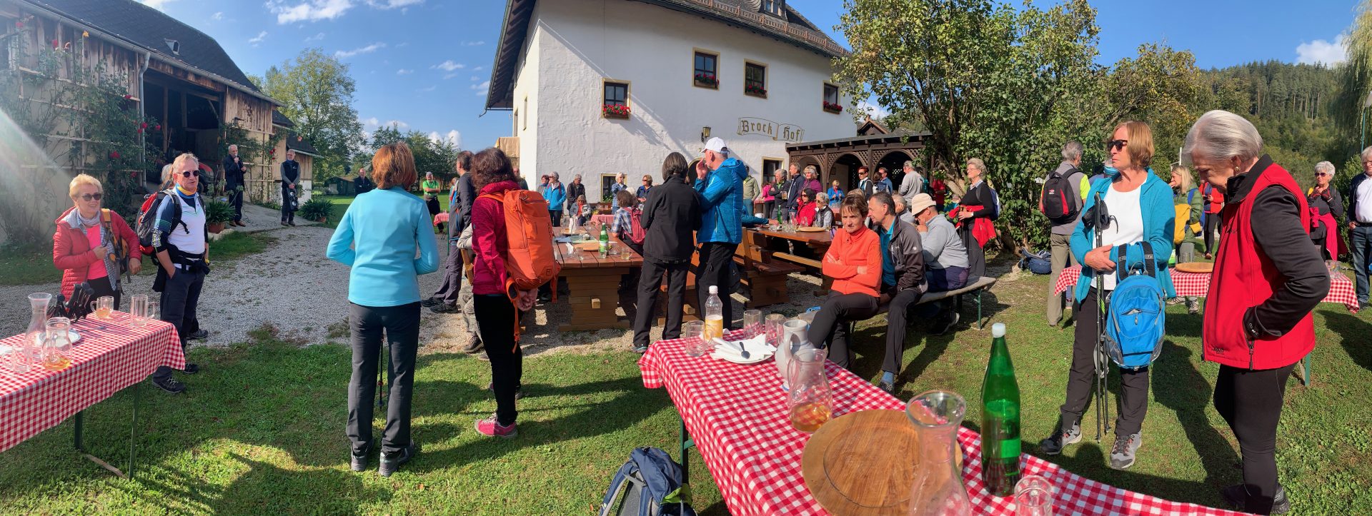 Bestes Wanderwetter begleitete die TeilnehmerInnen der 9. Sternwanderung auf den Pirkerkogel aus den drei Gemeinden Krumpendorf, Moosburg und Pörtschach am 9. Oktober. Die erste Etappe führte die Moosburger Gruppe über den Glücksparcours und den Weg der Stille zur Buschenschank Brock in Pörtschach, wo die anderen beiden Gruppen auch eintrafen. Erstmals in der neunjährigen Geschichte der Sternwanderung trafen dabei über 100 Wandersleute aufeinander. Nach der Labung beim Brockhof erzählte der Pörtschacher Historiker Peter Napetschnig so manches zur Geschichte des Hofes und dessen Umgebung. Die weitere Wanderung führte die große Gruppe dann zur nächsten Station auf den Pirkerkogel. Für die Mühen des Aufstieg wurde man doppelt belohnt – mit einem Bilderbuchausblick und mit einer Begegnung der besonderen Art: Gitarrenprofi Bulat Budaev verzauberte die Wandersleute mit einer musikalische Reise rund um den Globus. Bei der Endstation, dem Reiterhof Binz, gab es zum Abschluss noch flotte Hausmusik und eine köstliche Stärkung von Karin Binz und dem Verein Pritschitz Aktiv. Die Bürgermeisterin und die beiden Bürgermeister der drei Teilnehmergemeinden bedankten sich bei den TeilnehmerInnen und luden bereits ein zur 10. Jubiläumswanderung im Jahr 2022. Ein großes Danke an Christian Berg vom Verein Pritschitz Aktiv für die Organisation dieser tollen Veranstaltung.