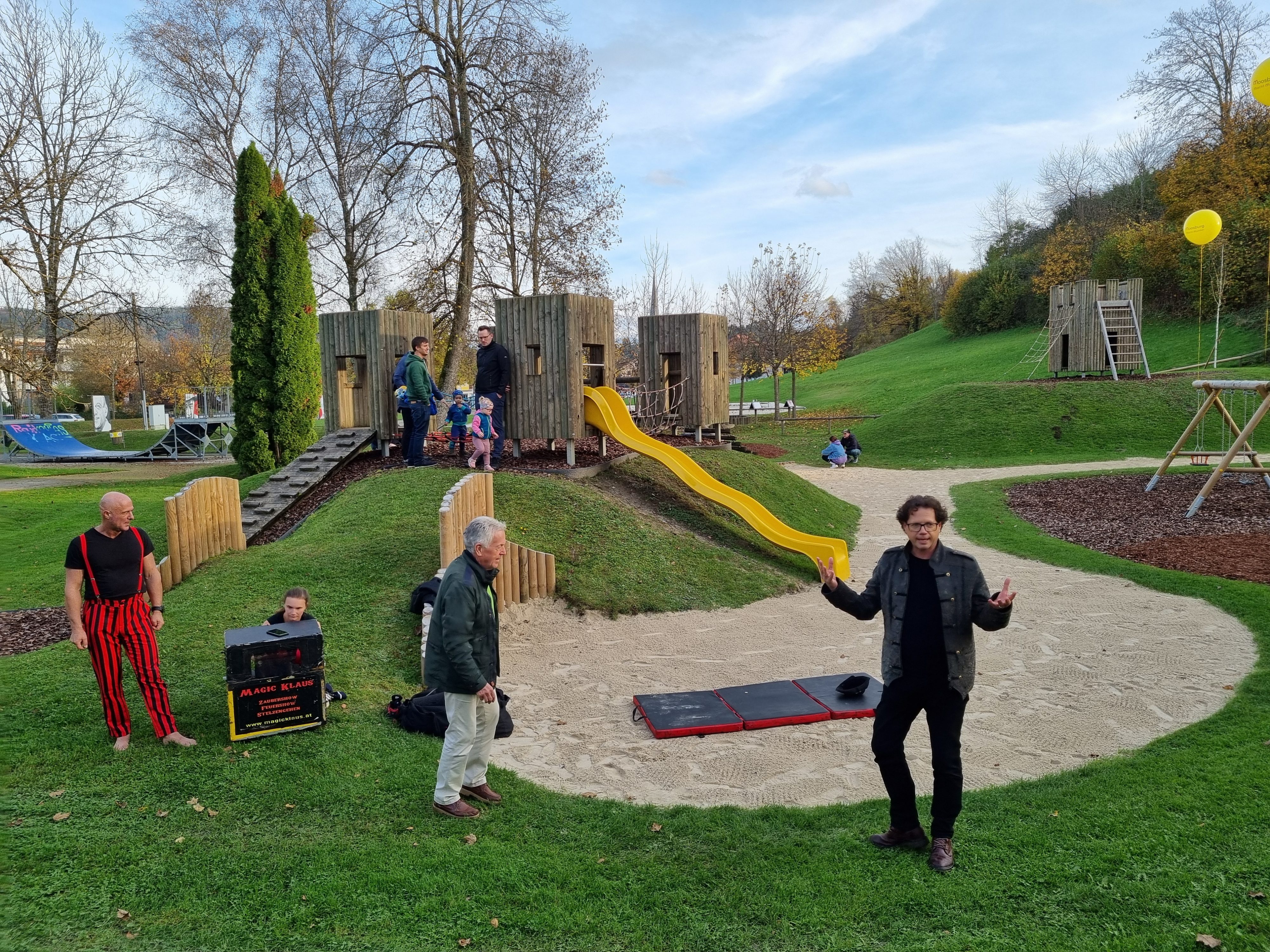 Am 25. Oktober eröffnete die Gemeinde Moosburg feierlich die erweiterten und sanierten Kinderspielplätze in Tigring und in Moosburg. Zahlreiche Kinder und Familien nahmen an der Einweihung teil, bei der der Zauberkünstler Magic Klaus mit seiner Assistentin die kleinen aber auch die großen Gäste verzauberte.