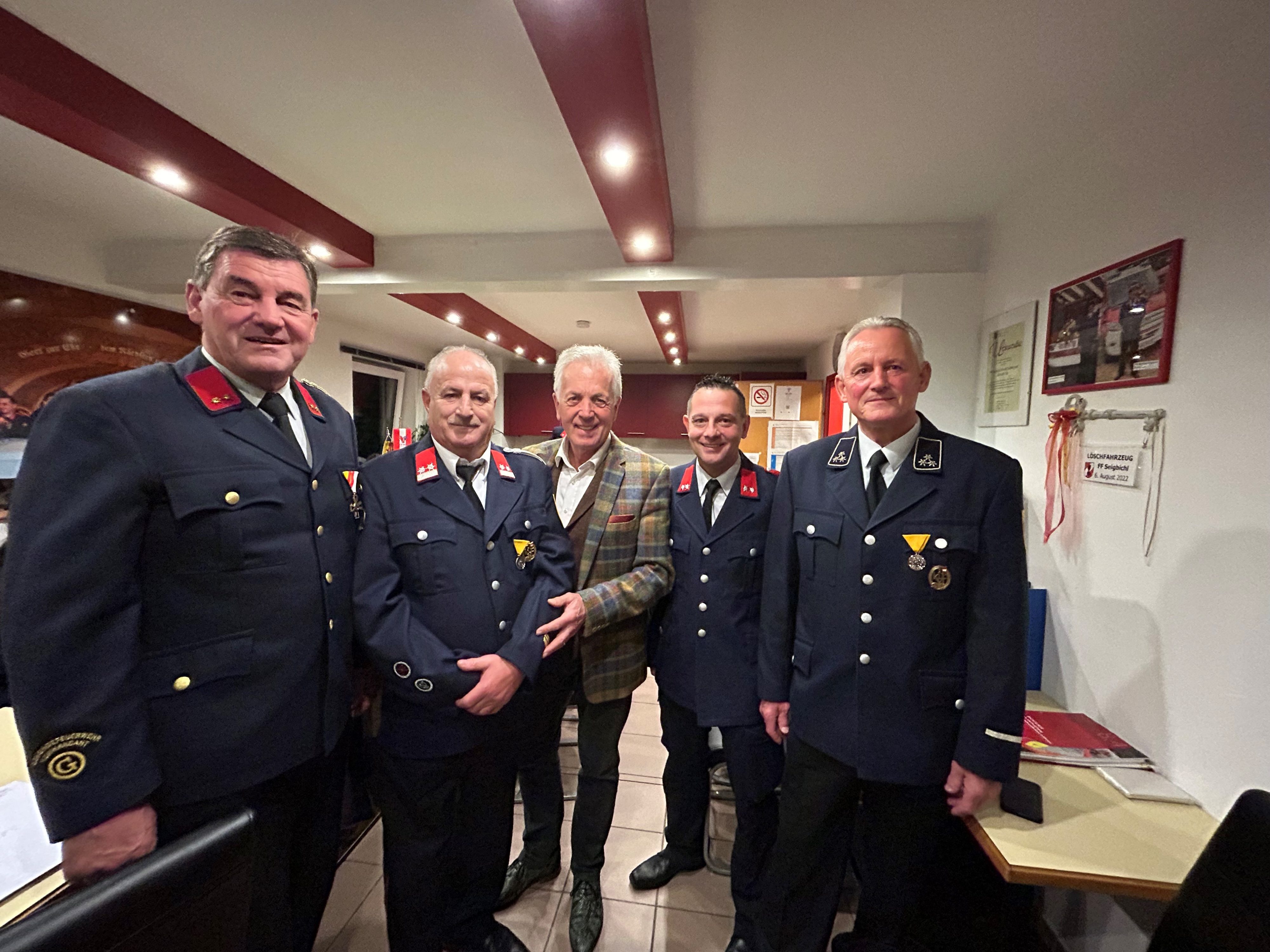 Foto: OLM Karl Olschefsky (2. vl) ist der neue stellvertretende Ortsfeuerwehrkommandant. Kommandant OBI Josef Maurer, Bgm Herbert Gaggl, OFM Thomas Joham und HV Johann Maurer.
