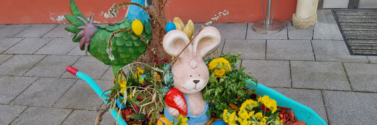 Der Frühling hält wieder Einzug! Trotz der angespannten finanziellen Lage hat die Gemeinde nicht auf ein wenig festliche Osterdekoration verzichtet. So begrüßt vor dem Gemeindeamt ein kleines, aber liebevoll gestaltetes Oster-Arrangement die Besucher. Mit fröhlichen Osterhasen und bunten Akzenten sorgt es für einen freundlichen Frühlingsgruß und ein Lächeln auf den Gesichtern der Passanten. „Vielen Dank allen, die wieder mitgeholfen haben, dass sich unsere Gemeinde so schön präsentiert,“ so Bgm Herbert Gaggl. Die sonst so liebevoll gestaltete aufwändige Dekoration im Zentrum und an den Ortseinfahrten konnte aufgrund der fehlenden Mittel heuer nicht realisiert werden.