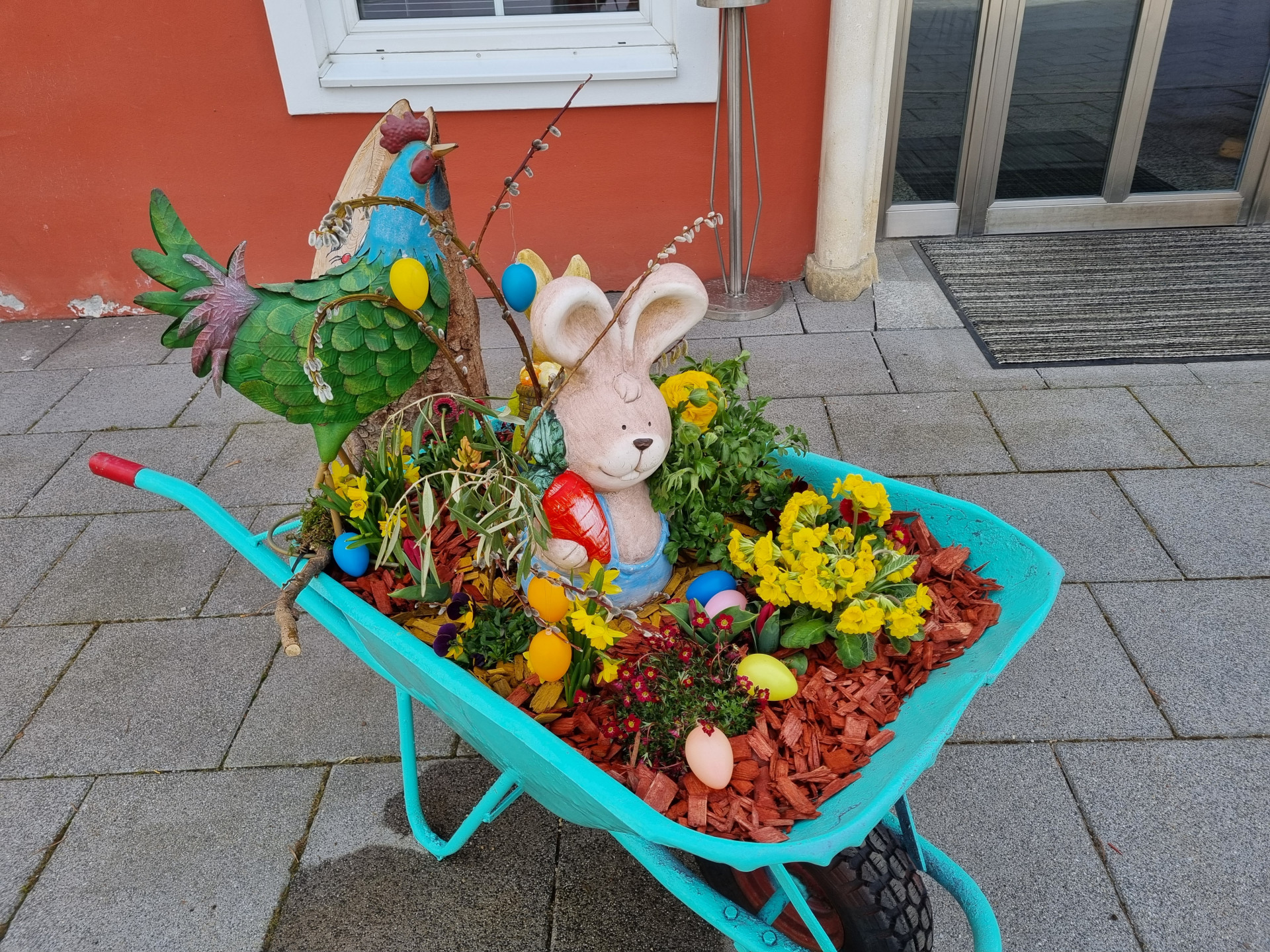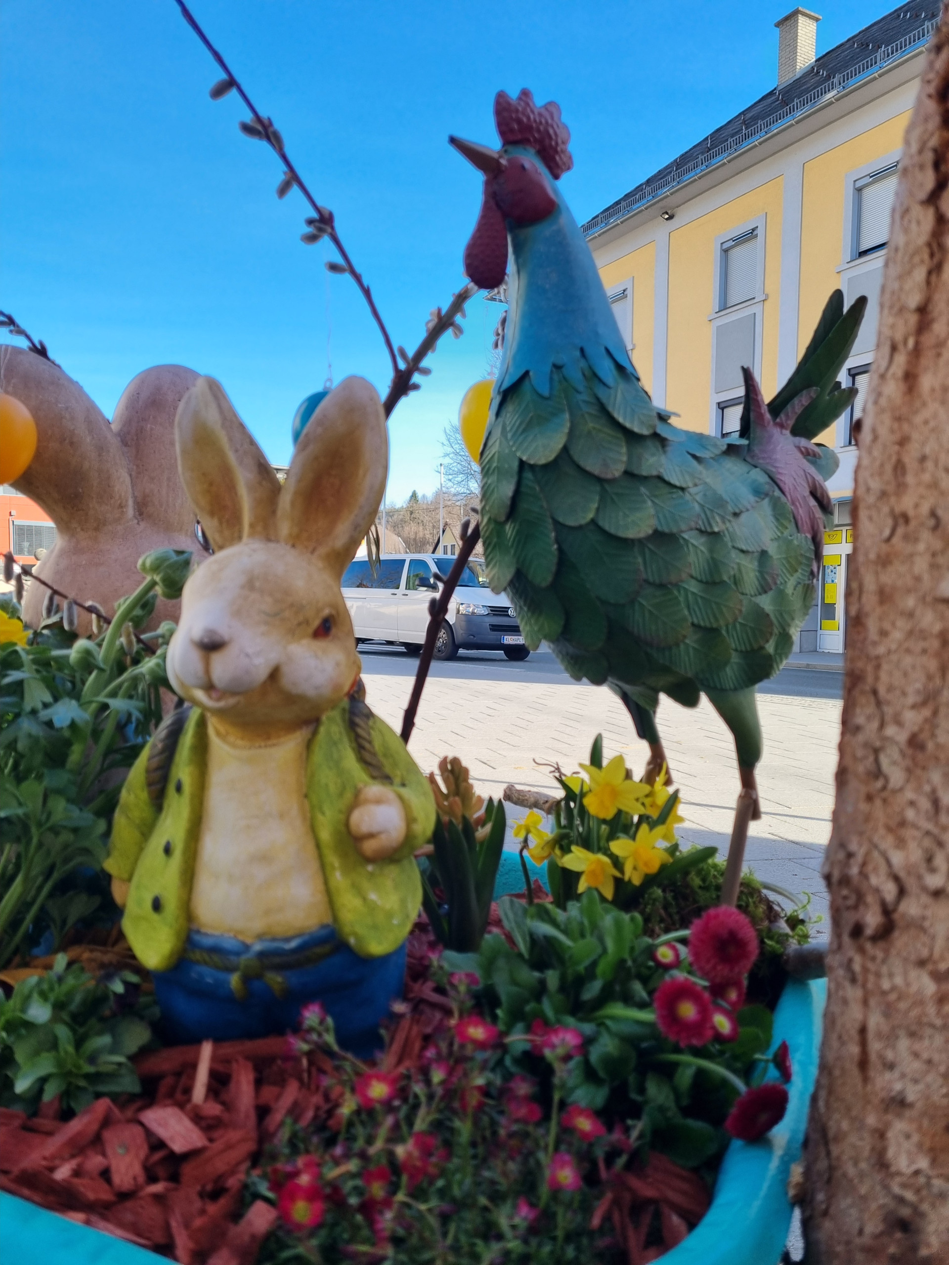 Der Frühling hält wieder Einzug! Trotz der angespannten finanziellen Lage hat die Gemeinde nicht auf ein wenig festliche Osterdekoration verzichtet. So begrüßt vor dem Gemeindeamt ein kleines, aber liebevoll gestaltetes Oster-Arrangement die Besucher. Mit fröhlichen Osterhasen und bunten Akzenten sorgt es für einen freundlichen Frühlingsgruß und ein Lächeln auf den Gesichtern der Passanten. „Vielen Dank allen, die wieder mitgeholfen haben, dass sich unsere Gemeinde so schön präsentiert,“ so Bgm Herbert Gaggl. Die sonst so liebevoll gestaltete aufwändige Dekoration im Zentrum und an den Ortseinfahrten konnte aufgrund der fehlenden Mittel heuer nicht realisiert werden.