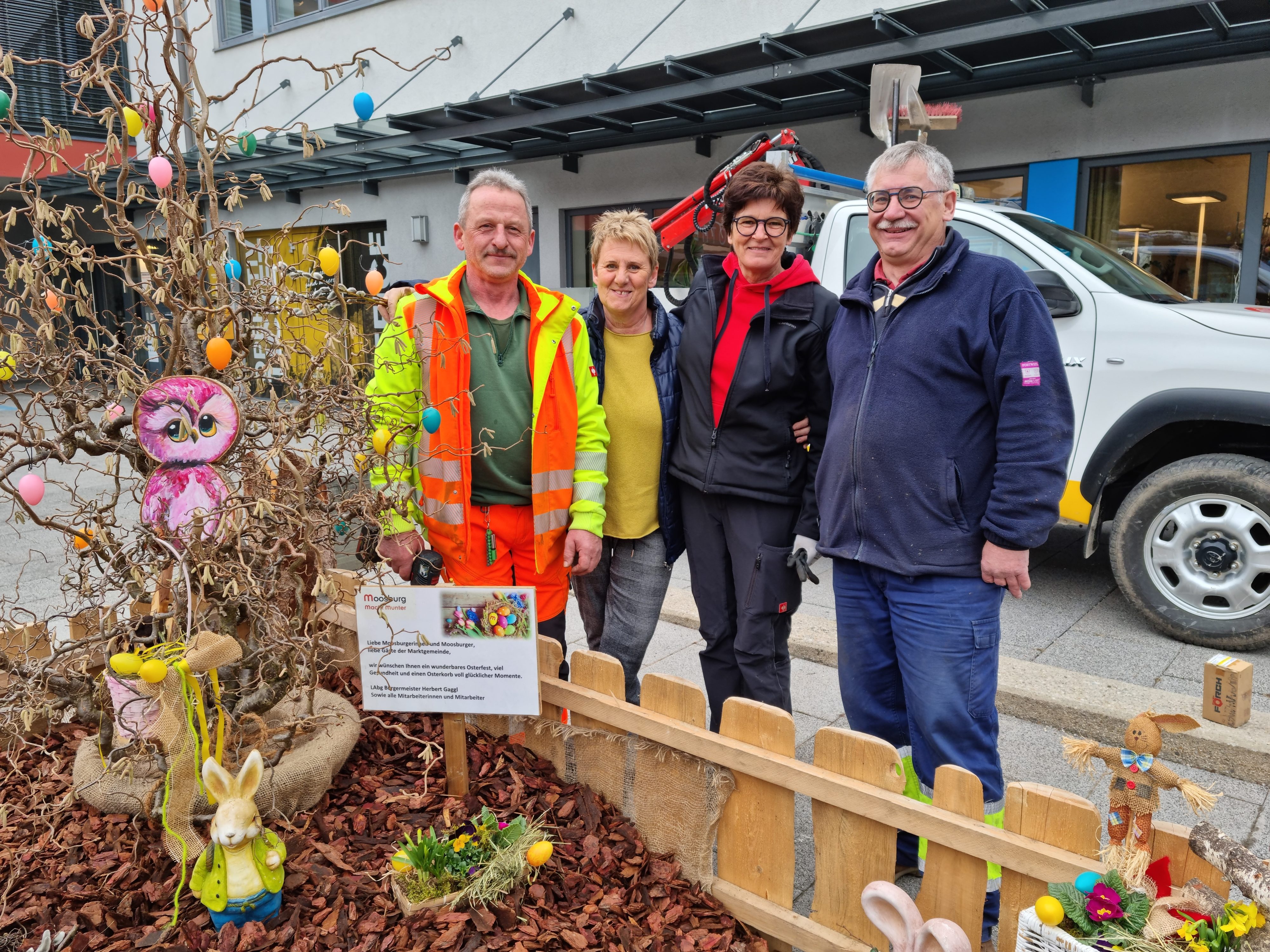Der Frühling hält mit großen Schritten Einzug, und unsere fleißigen Mitarbeiterinnen und Mitarbeiter haben das Zentrum bereits österlich dekoriert. Der „Hasengarten“ vor dem Gemeindezentrum ist wieder zum Blickfang geworden, man findet große Holzeier und Nester im Zentrum und an den Ortseinfahrten, Birkenbankerln, überall erste bunte Frühjahrsblüher und vieles mehr. „Vielen Dank allen, die wieder so tatkräftig mitgeholfen haben, dass sich unsere Gemeinde so schön präsentiert. Es ist immer wieder eine Freude, die kleinen Kunstwerke und kreativen Ideen anzuschauen,“ so Bgm Herbert Gaggl.