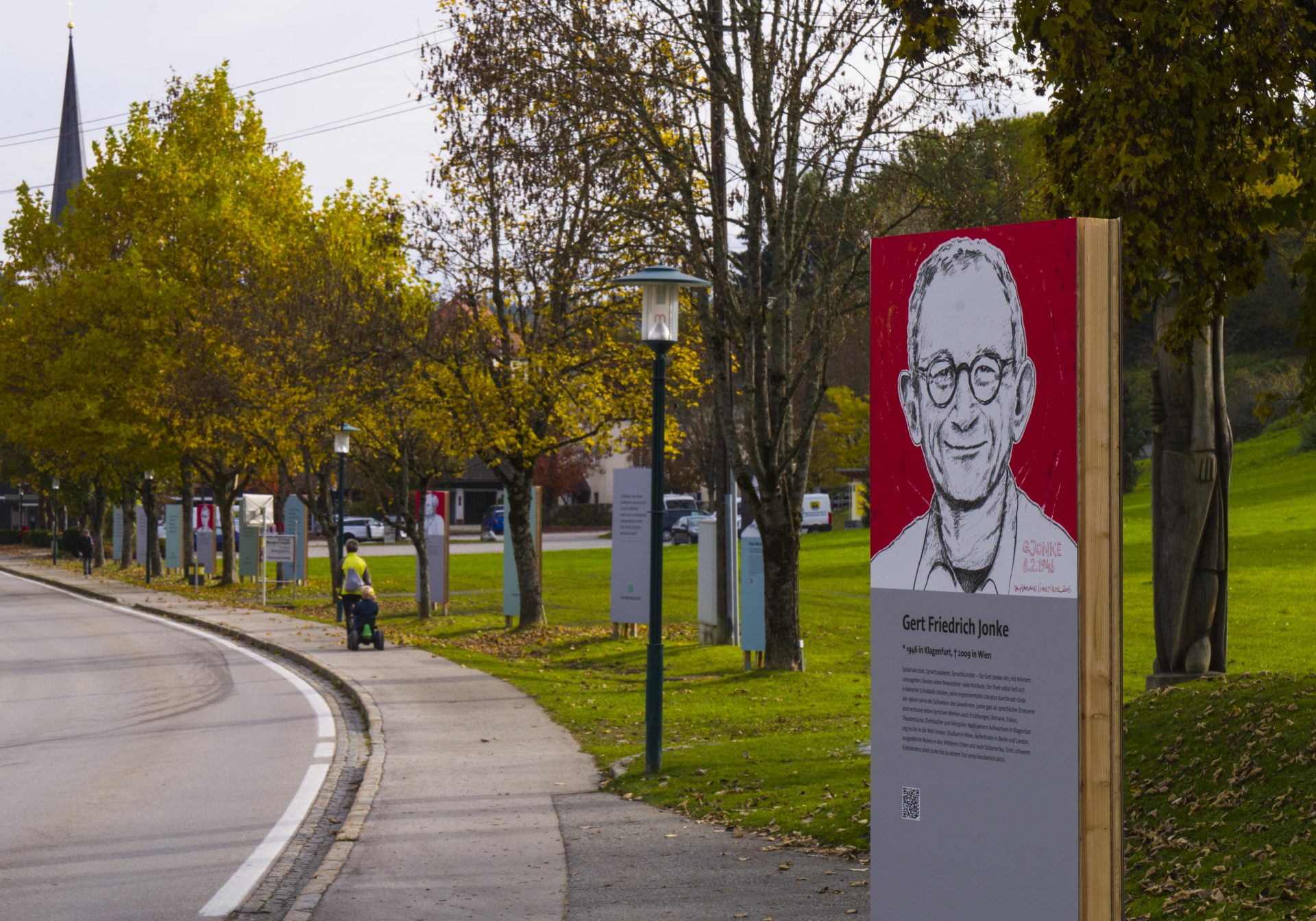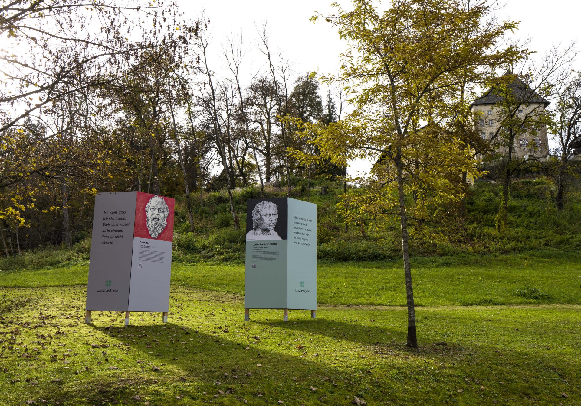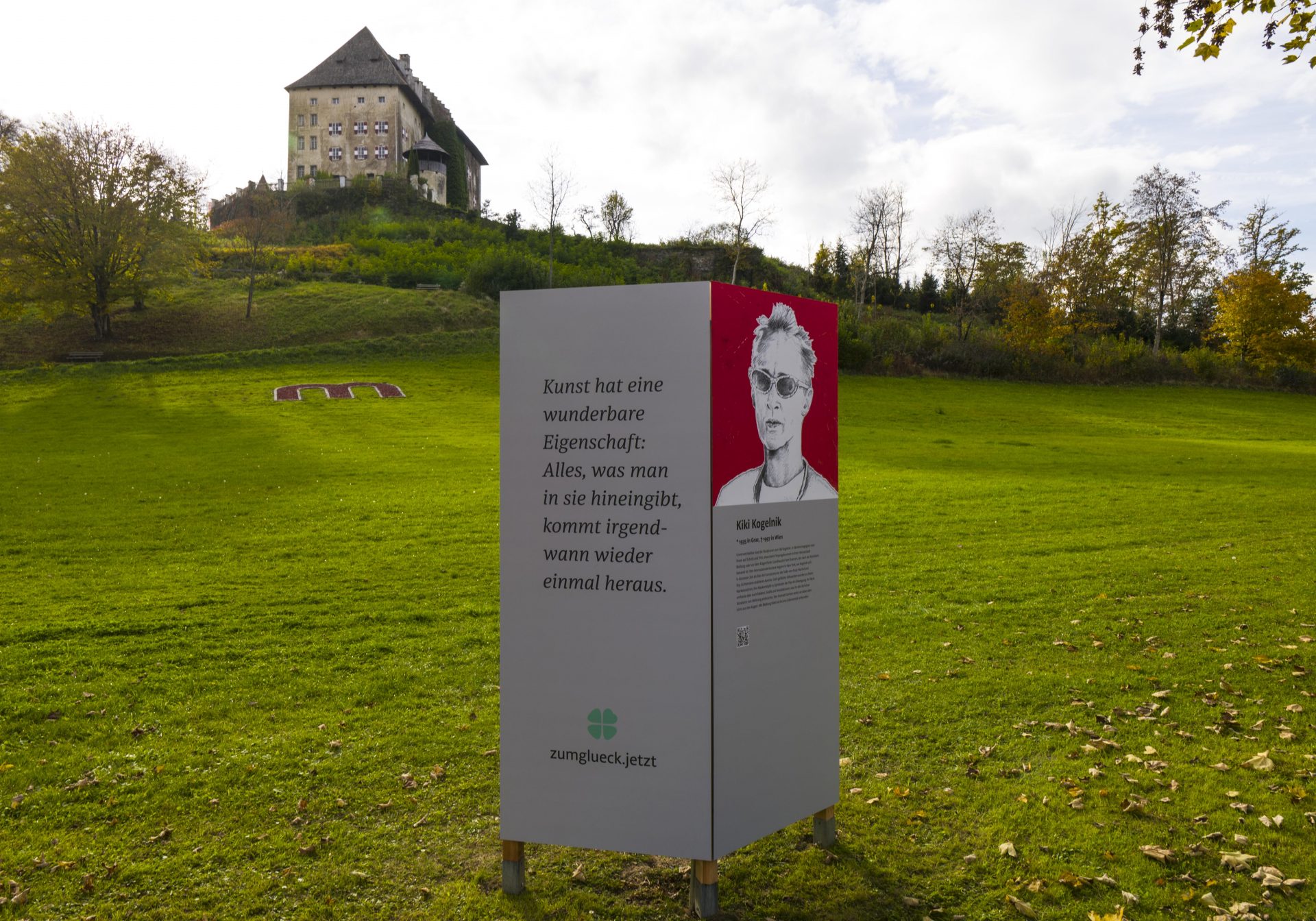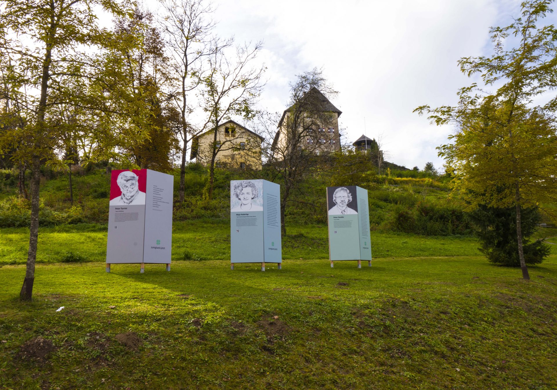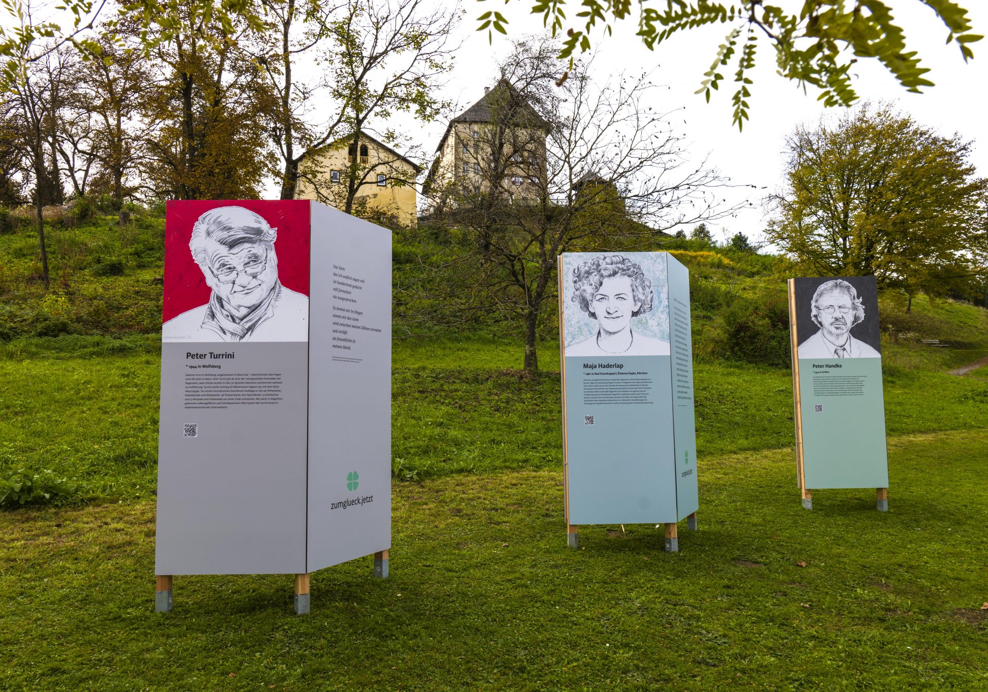 Die Galerie, die im Zentrum von Moosburg – entlang der Feldkirchner Straße, errichtet wurde, zeigt „Kluge Köpfe“, die vom Architekten und Künstler Prof. Harald Schreiber gezeichnet wurden. Den Köpfen sind Zitate zugeordnet, die von diesen Persönlichkeiten stammen und zum Nachdenken anregen sollen. Das Projekt zumglueck.jetzt wird vom Theologen und Psychotherapeuten Dr. Arnold Mettnitzer kuratiert.