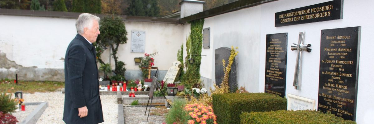 Anlässlich des Allerheiligen- und Allerseelentages gedachte Bürgermeister Herbert Gaggl den verstorbenen Moosburgerinnen und Moosburgern und zündete am Ehrengrab eine Kerze an.