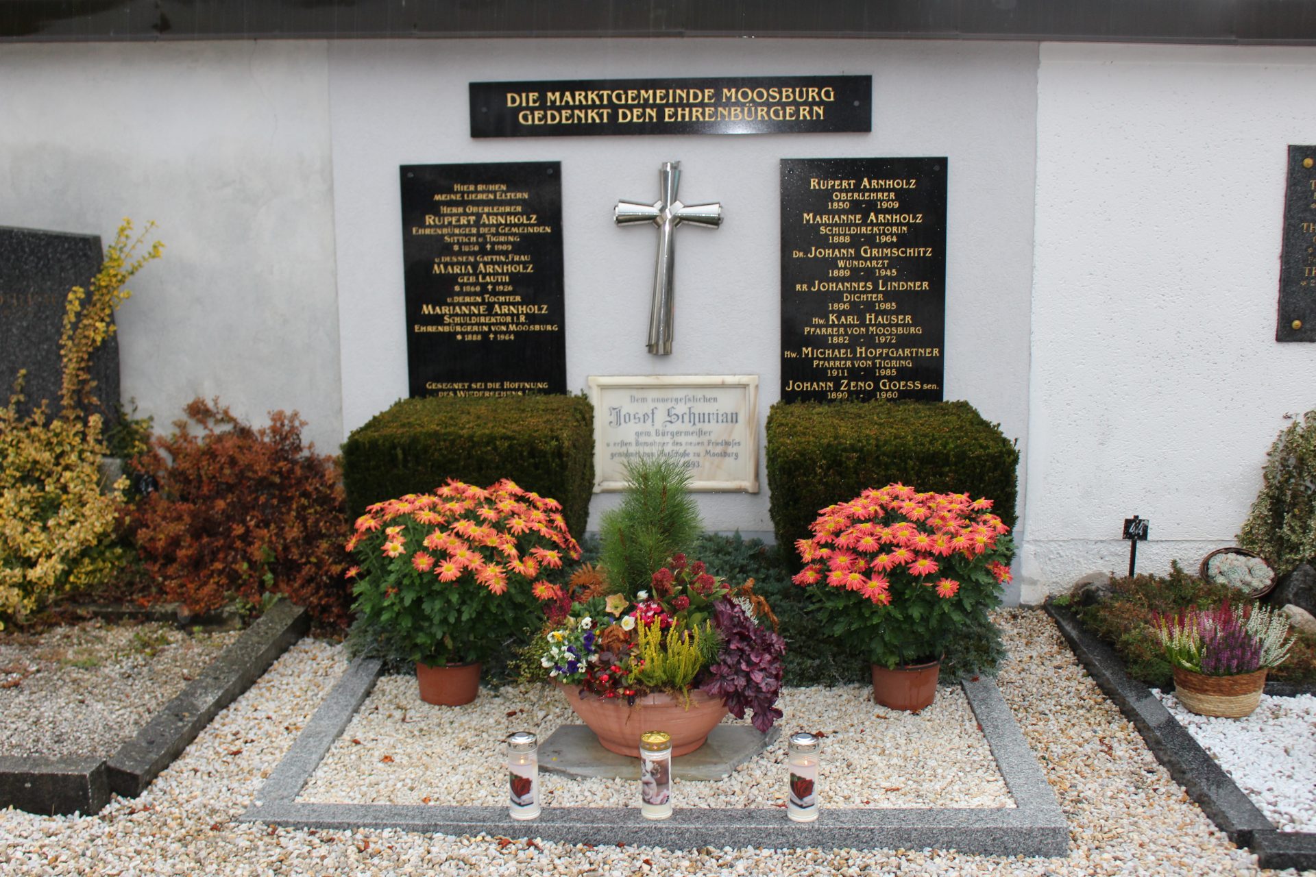 Anlässlich des Allerheiligen- und Allerseelentages gedachte Bürgermeister Herbert Gaggl den verstorbenen Moosburgerinnen und Moosburgern und zündete am Ehrengrab eine Kerze an.