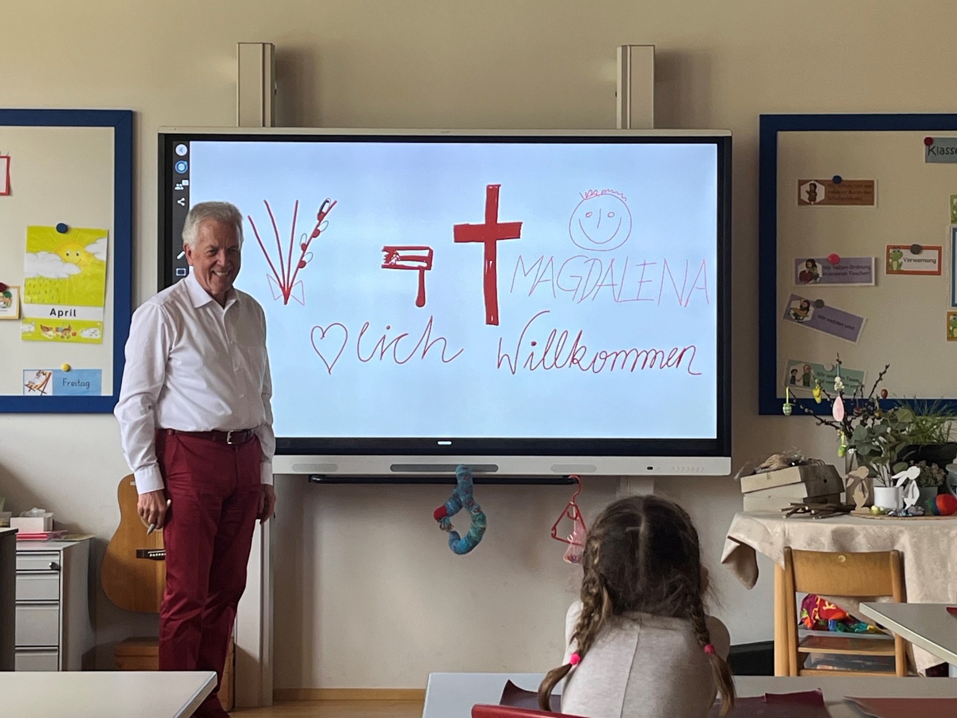 Ein besonderes Highlight war der Besuch einer modernen Schulklasse. Herr Bürgermeister Herbert Gaggl erklärte persönlich, wie sich die Volksschule Moosburg im Laufe der Jahre verändert und modernisiert hat.