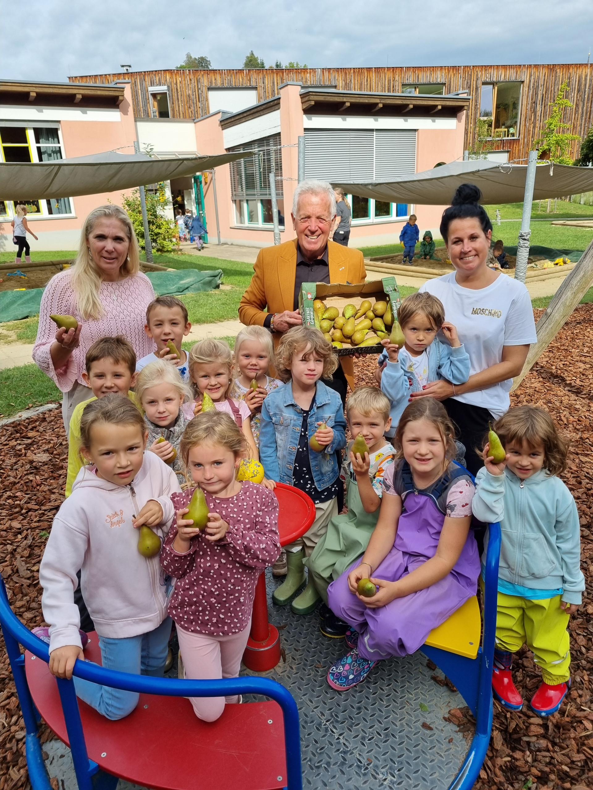 Auch die betreuten Kinder unserer Tagesmutter Frau Wallner sind mit dabei. Die Kinder freuen sich über die gesunden Snacks und lernen ganz nebenbei den Wert regionaler und frischer Lebensmittel kennen.