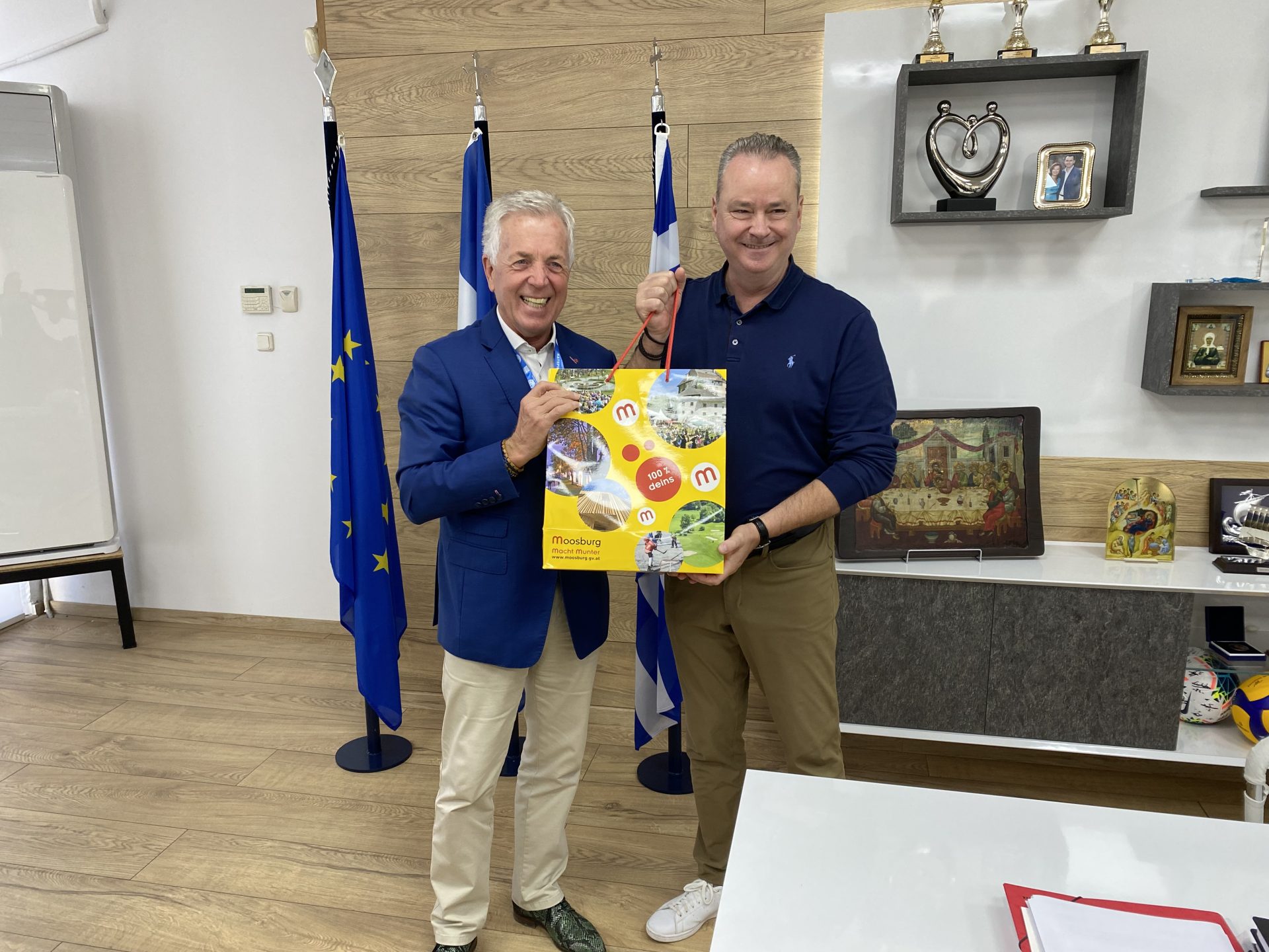 LAbg Bürgermeister Herbert Gaggl, GV Stefan Staudacher, Walter Pickl und Amtsleiter Norbert Pichler nahmen an den Feierlichkeiten teil. „Die Partnerschaft mit Katerini ist ein kleiner, aber wichtiger Baustein für das friedliche Zusammenleben in Europa. Wenn wir andere Menschen, andere Nationen akzeptieren, dann hat der Krieg keine Chance“, betonte Bürgermeister Herbert Gaggl.