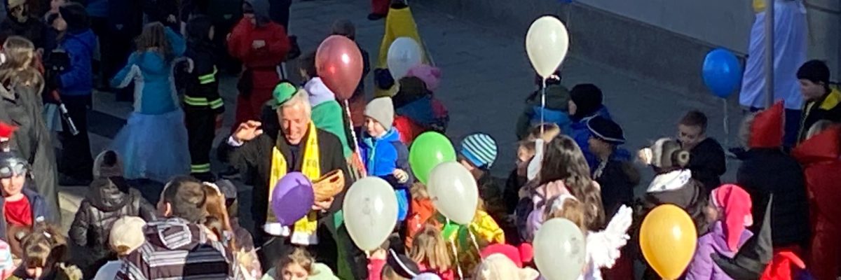 Schüler*innen, Lehrer*innen und Eltern zogen durch Moosburg und feierten den Faschingdienstag.