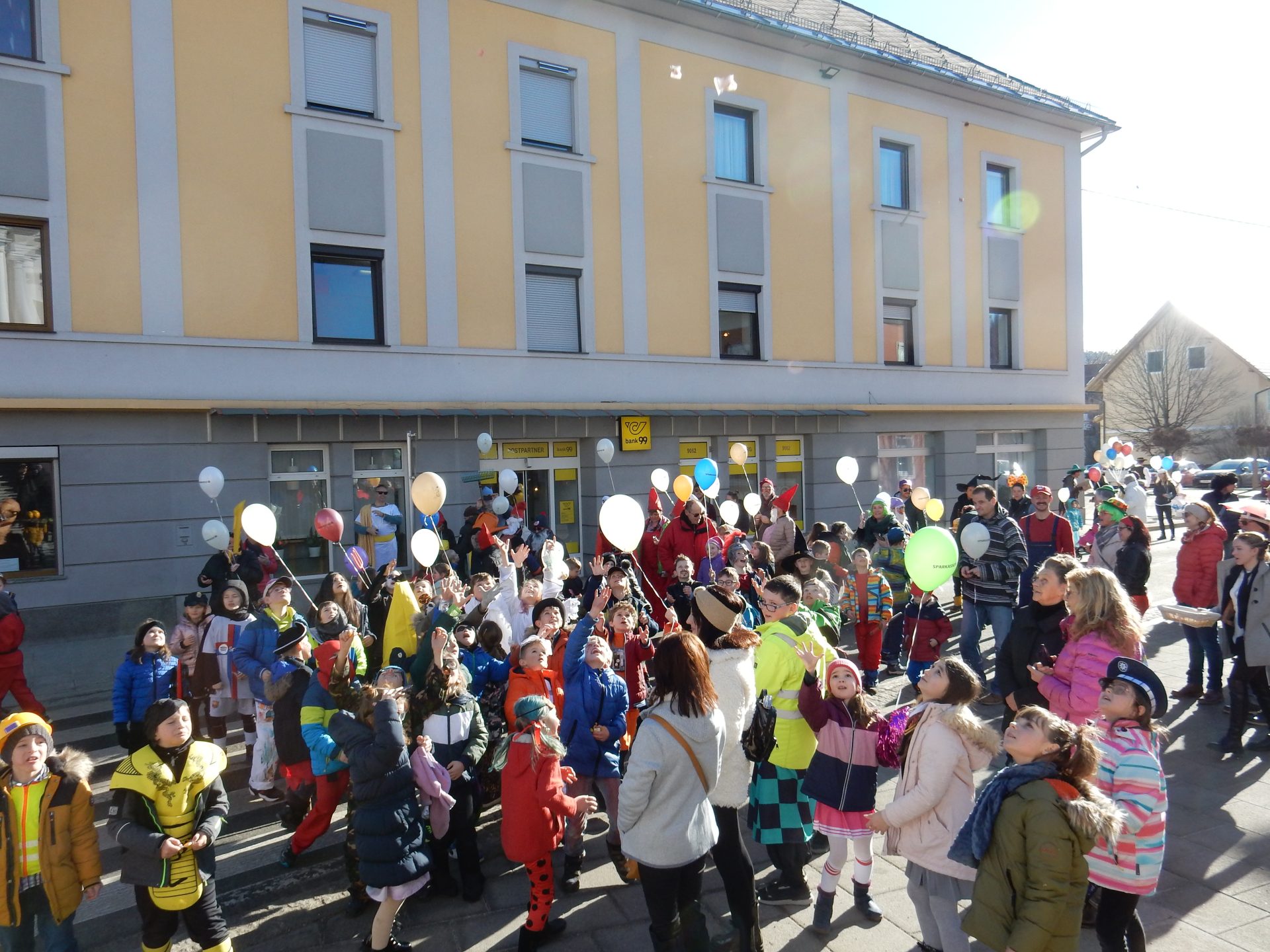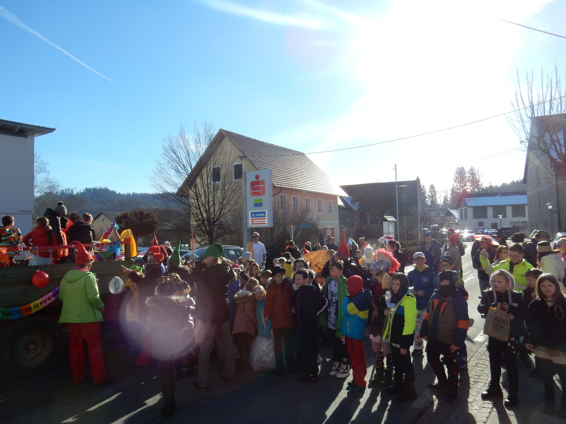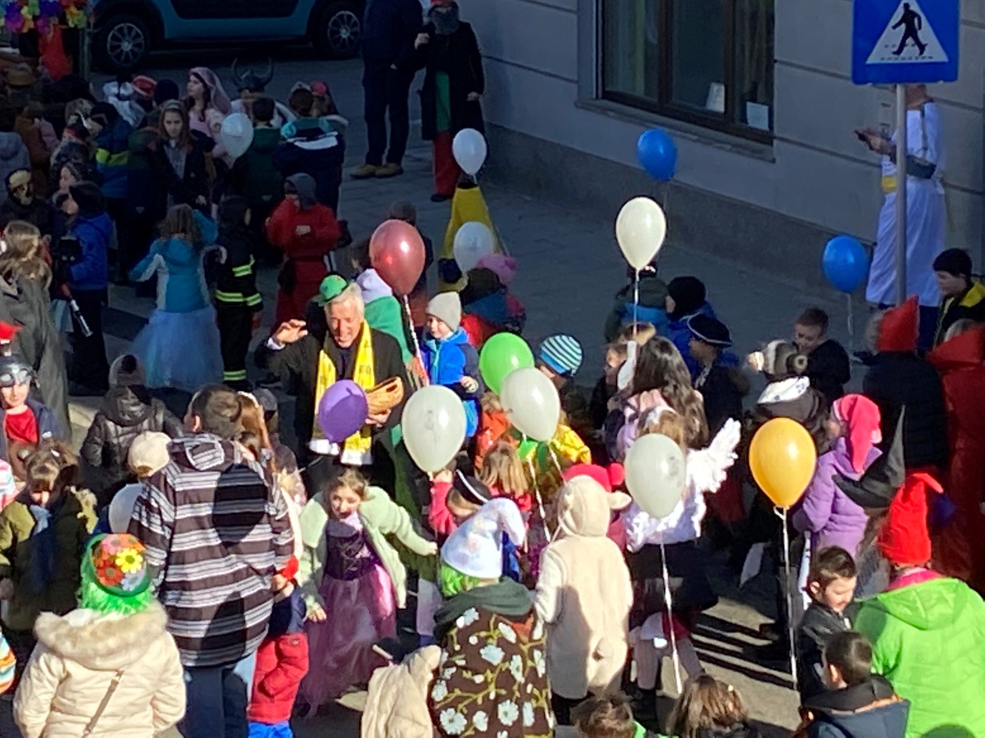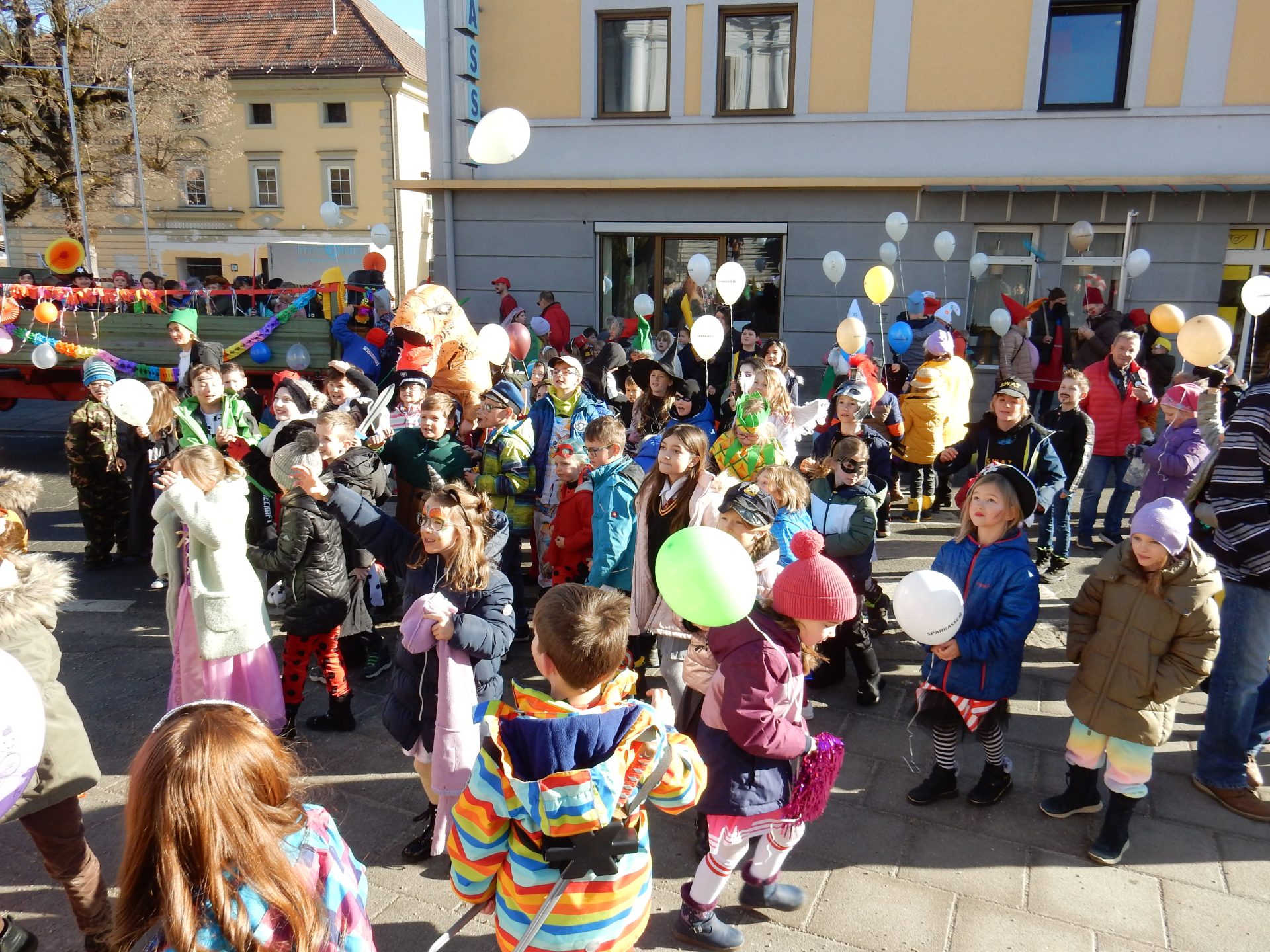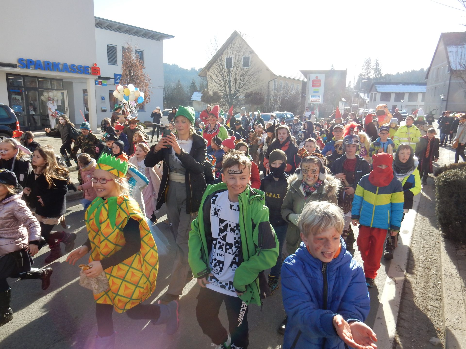 Schüler*innen, Lehrer*innen und Eltern zogen durch Moosburg und feierten den Faschingdienstag.