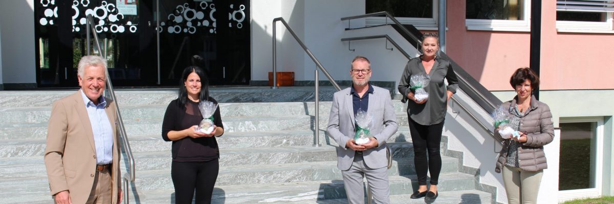Das neue Schuljahr hat begonnen. Bürgermeister Herbert Gaggl begrüßte die LeiterInnen der Bildungseinrichtungen und stellte sich mit einem kleinen Präsent ein.