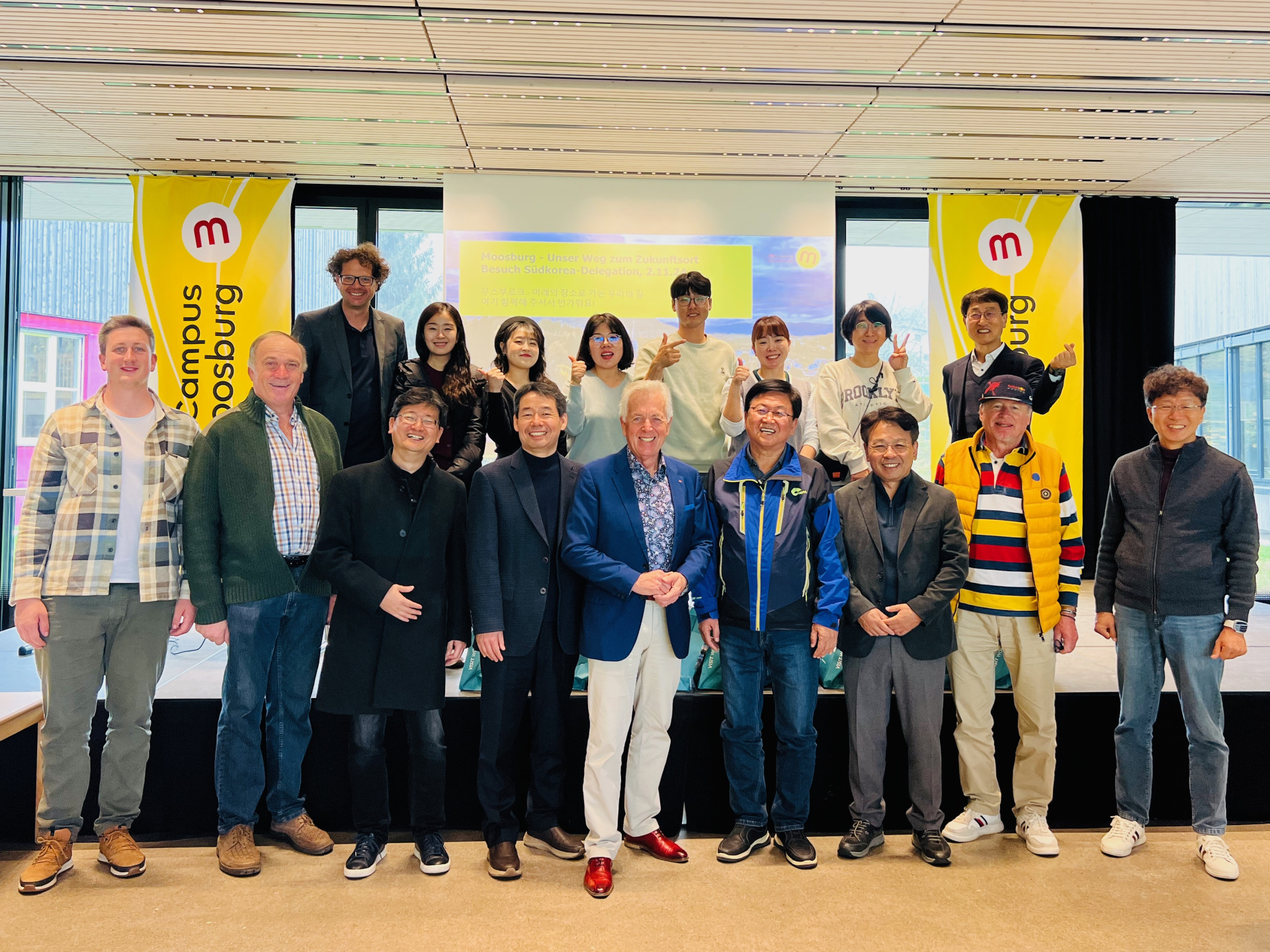 Im Rahmen einer Europareise besuchte eine Delegation aus der südkoreanischen Region Jung-gu, die ein Teil der Metropolregion Daejeon ist, die Gemeinde Moosburg und unseren Campus. Jung-gu ist bekannt für seine innovativen Ansätze im Bildungsbereich und wählte unsere Gemeinde Moosburg als eine von wenigen Stationen in Europa, neben Wien und Stockholm, um Einblicke in unsere Bildungs- und Gemeindeentwicklung zu erhalten und sich mit innovativen Gemeinden zu vernetzen.