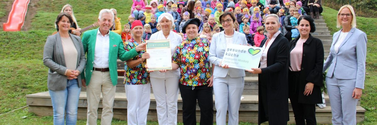 Der Kindergarten Moosburg ist seit Juli 2020 Partnerin der Gesunden Küche. Die Leiterin Doris Sagmeister hat die Einführung der Gesunden Küche sehr umsichtig begleitet. Das Küchenteam unter der Leitung von Adelheid Albrecht, Birgit Rumpf, sowie Marianne Schorn hat die Umstellung und Optimierung der Speisepläne sehr engagiert und immer motiviert umgesetzt. Die spielerische pädagogische Begleitung der Kinder auf dem Weg zu einer „gesunden Ernährung“ erhöhte die Akzeptanz der „neuen“ Speisen – vor allem der alternativen Getreidesorten. Ein wichtiger Aspekt ist es, den Kindern eine gesunde Ernährung aufzuzeigen, dafür zu sensibilisieren und ein Bewusstsein dafür auszubilden.