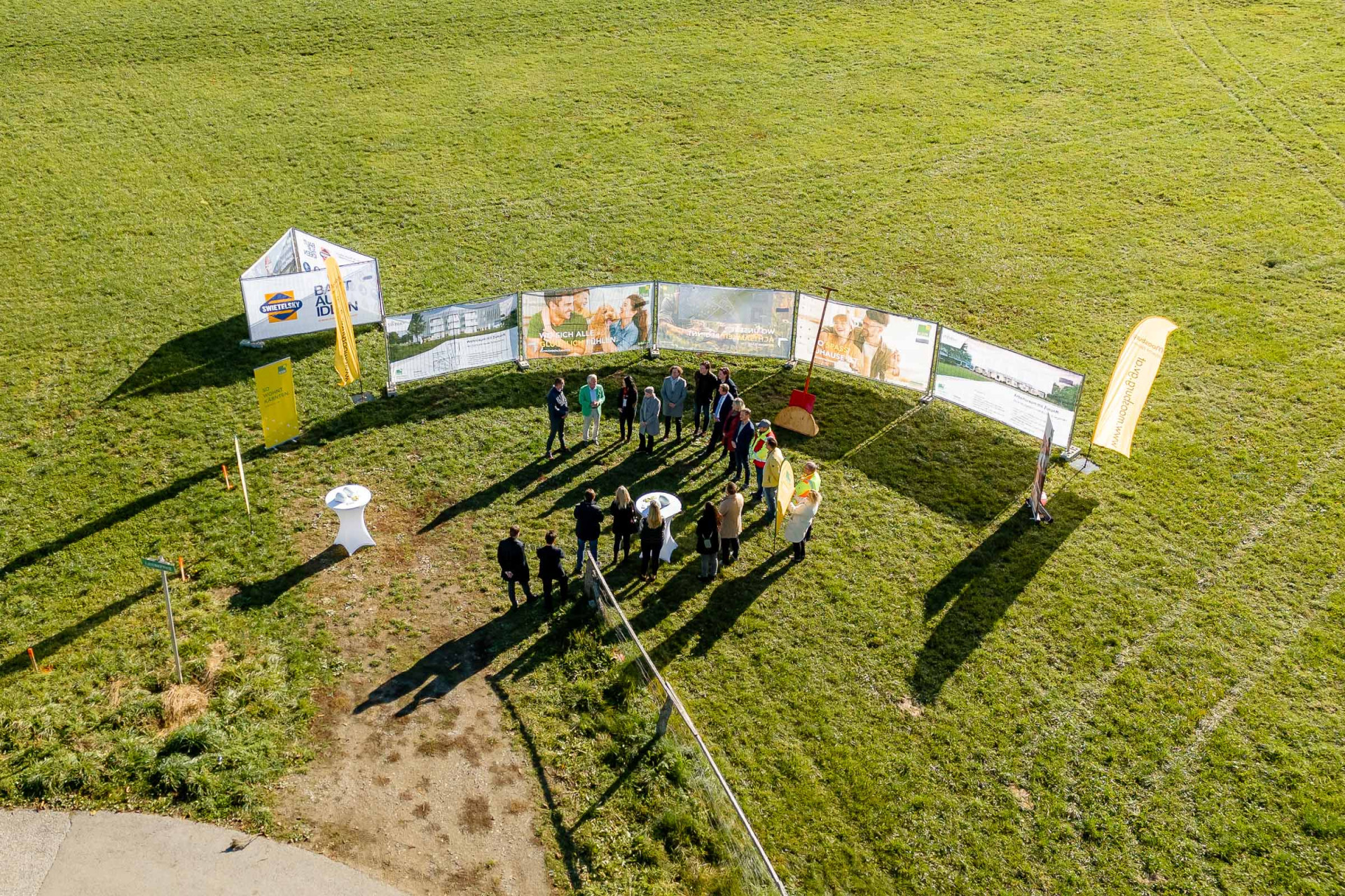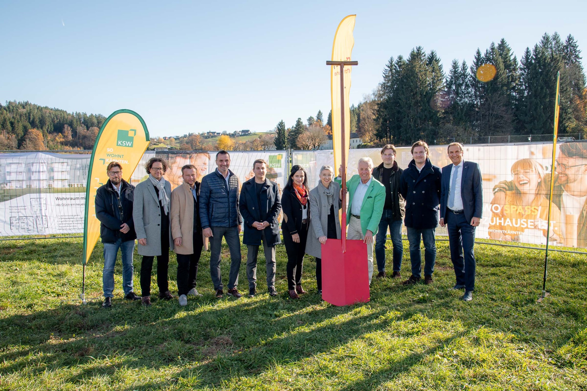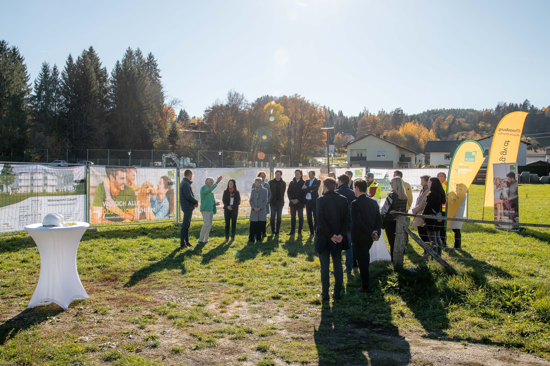 Am 4. November 2025 wurde von Landeshauptmann-Stellvertreterin Gaby Schaunig und Bürgermeister Herbert Gaggl gemeinsam mit Vertretern des Bauträgers, der Architekten, den Finanzinstituten sowie den beiden Vizebürgermeistern und Gemeindemitarbeitern der Start für das neue Wohnbauprojekt im Moosburger Zentrum gelegt.
