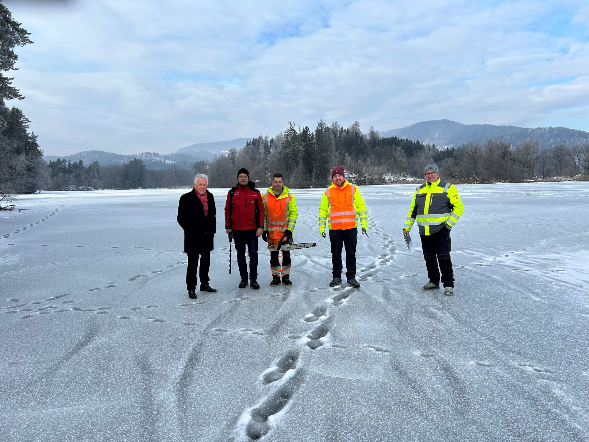 Am Freitag, den 23. Jänner fand ein Ortsaugenschein statt, beim dem Bürgermeister Herbert Gaggl, Amtsleiter Norbert Pichler, Wirtschaftshofleiter Hermann Koraschnig, Wassermeister Daniel Schuss, der Obmann des Eislaufvereines Wörthersee, Mag. René Riepan und Mitarbeiter des Wirtschaftshofes teilgenommen haben. „Wir wollten aufgrund der tiefen Temperaturen den Teich zum Eislaufen und für sonstige Aktivitäten freigeben. Leider ist das nicht möglich“, informiert Bürgermeister Herbert Gaggl.