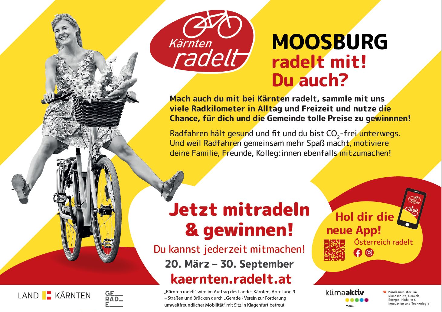 Setzen wir gemeinsam ein Zeichen für Radfahren und umweltfreundliche Mobilität. Registrieren Sie sich über die Österreich radelt-App oder online auf www.kaernten.radelt.at oder nutzen sie die Liste im Moosburg-Service. Sie können jederzeit mitmachen und die Radkilometer laufend oder alle auf einmal eintragen. Es zählen sämtliche geradelten Kilometer rückwirkend ab dem 20. März 2024. Die Aktion läuft noch bis 30. September 2024. Auch Betriebe und Vereine sind eingeladen mitzumachen, denn gemeinsam Radfahren macht noch mehr Spaß.