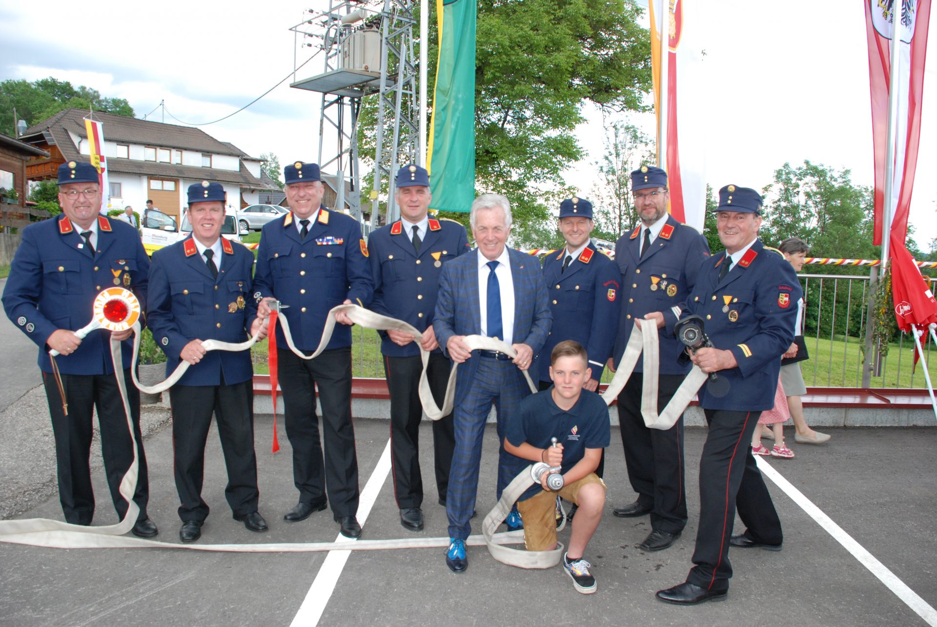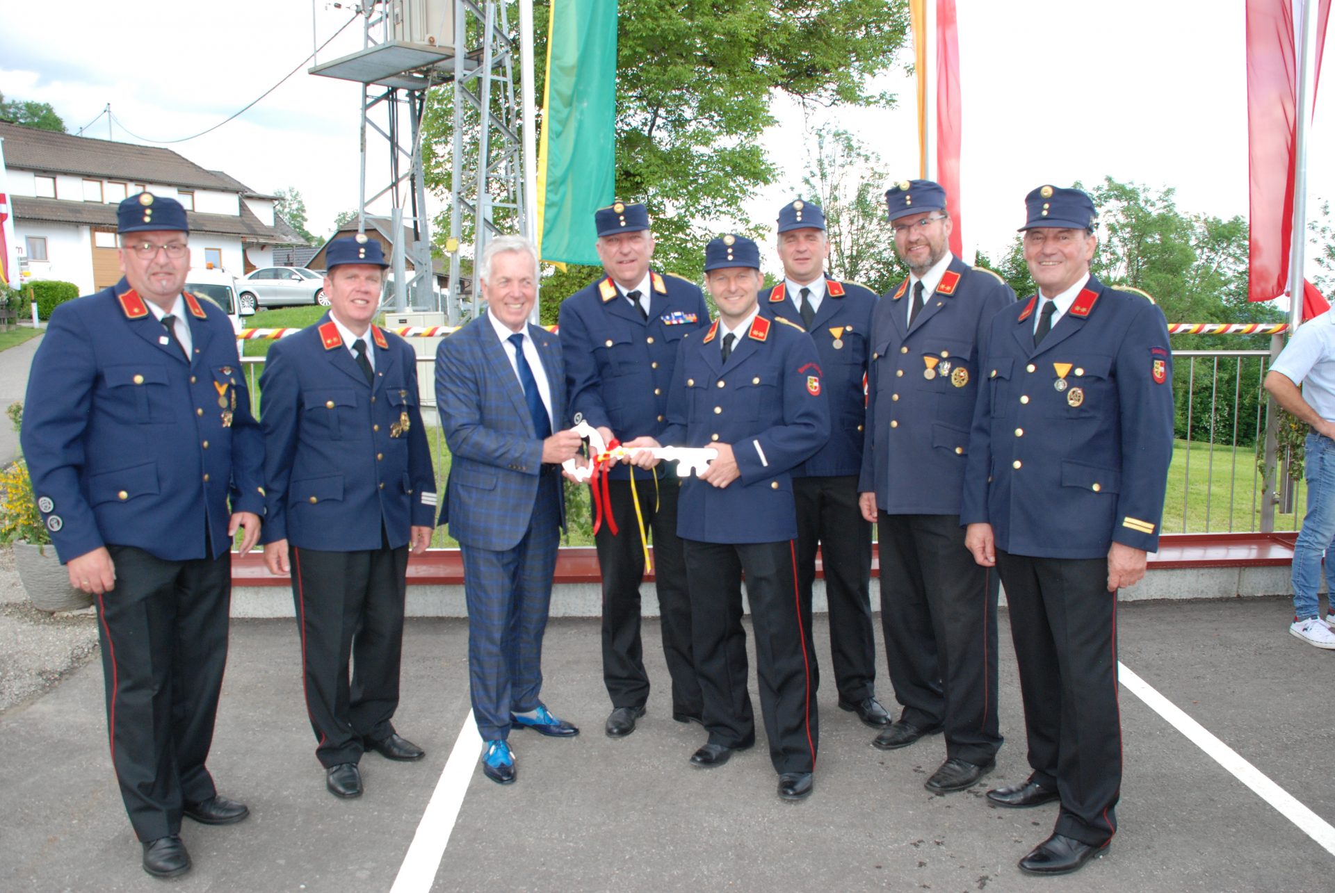 vl: Vzbgm Roland Gruber, LAbg Bgm Herbert Gaggl, Ortsfeuerwehrkommandant Alexander Schwarzfurtner, Peter Mörtlitz, Bezirksfeuerwehrkommandant Ulrich Nemec, LAbg Bgm Klaus Köchl