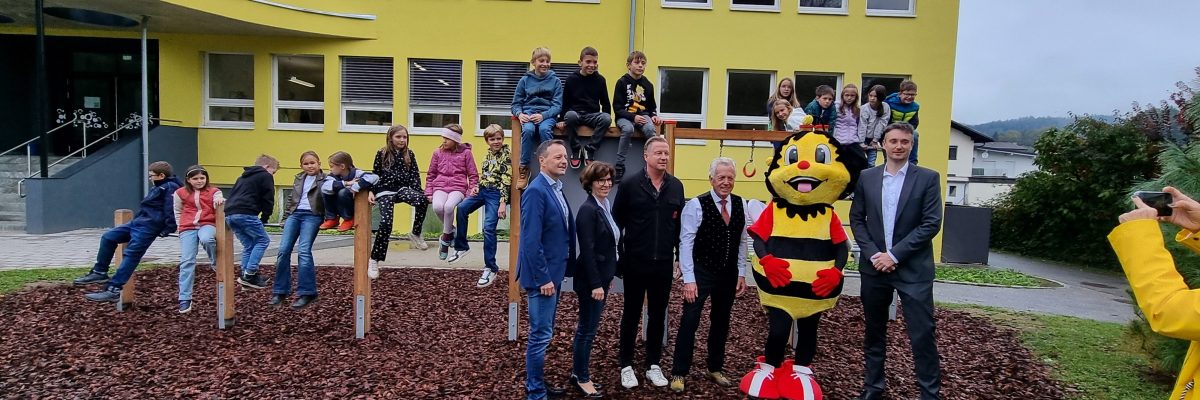 Durch das großzügige Sponsoring der Firma New Mediacheck GmbH von Michael und Thomas Semmler und der Raiffeisenbank Moosburg-Tigring wurde für die Schulkinder ein Kletter- und Turngerüst angekauft und aufgestellt. Die Gemeinde Moosburg unterstützte bei den baulichen Maßnahmen.