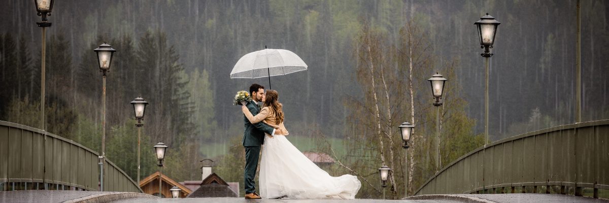 Das nominierte Foto zeigt ein Brautpaar aus dem Jahr 2023 am Weißensee – bei ganz viel Regen.