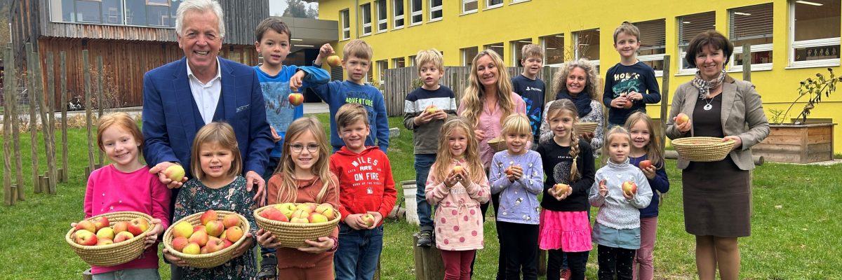 „Die Gesunde Ernährung für unsere Kinder ist mir besonders wichtig“, sagte LAbg. Bürgermeister Herbert Gaggl und schaute auch gleich bei der Verteilung in den Schulen und im Kindergarten persönlich vorbei.