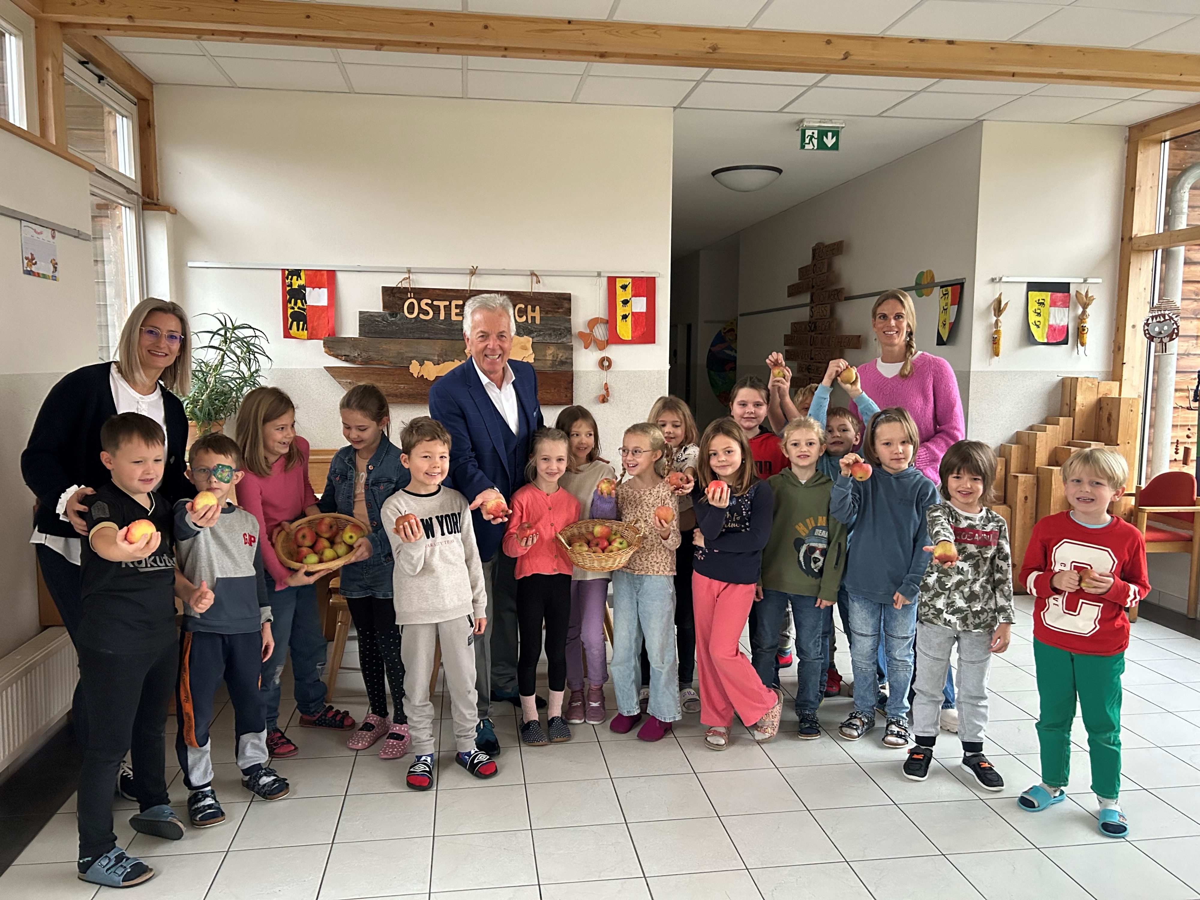„Die Gesunde Ernährung für unsere Kinder ist mir besonders wichtig“, sagte LAbg. Bürgermeister Herbert Gaggl und schaute auch gleich bei der Verteilung in den Schulen und im Kindergarten persönlich vorbei.