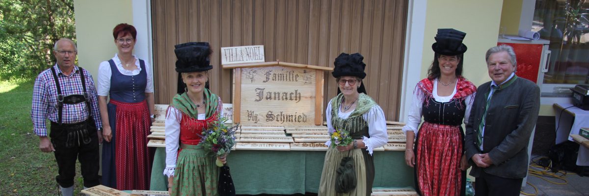 Bei herrlichstem Wetter und bei köstlicher Verpflegung der Gäste durch die fleißigen Hände unserer Mitglieder wurden die Hoftafeln mit Vulgarnamen durch die Obfrau Isabella Jessenitschnig persönlich an die Besitzer überreicht.