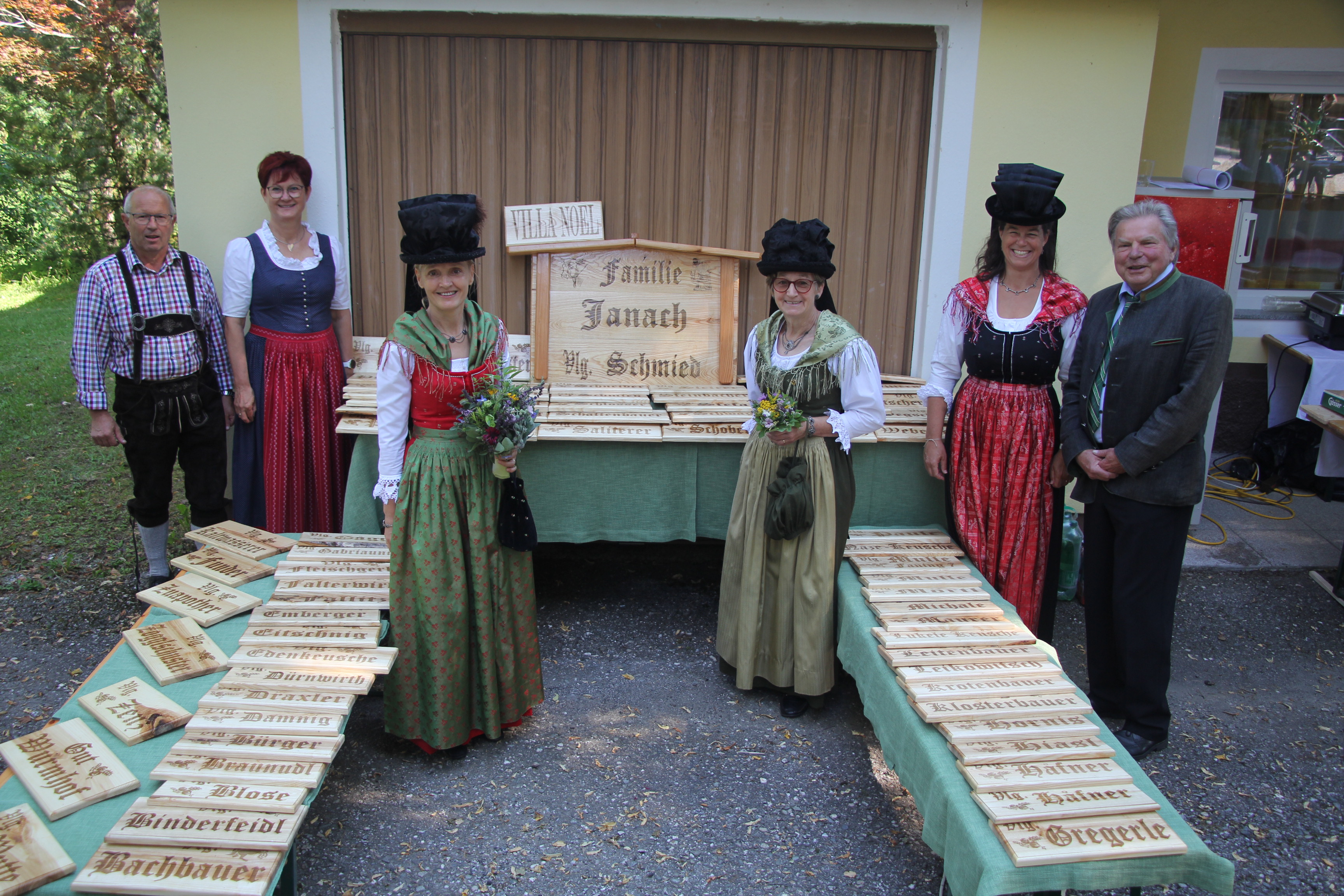 Bei herrlichstem Wetter und bei köstlicher Verpflegung der Gäste durch die fleißigen Hände unserer Mitglieder wurden die Hoftafeln mit Vulgarnamen durch die Obfrau Isabella Jessenitschnig persönlich an die Besitzer überreicht.