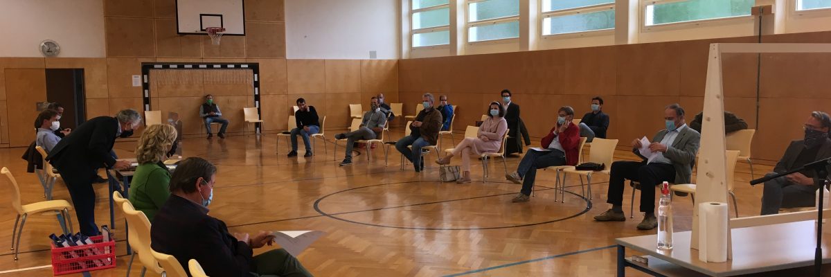 Aufgrund der aktuellen Corona-Situation wurden für die Sitzung entsprechende Sicherheitsvorkehrungen getroffen: die Sitzung fand im Turnsaal der Neuen Mittelschule statt. Die Mandatare kamen mit Mund- und Nasenschutz..
