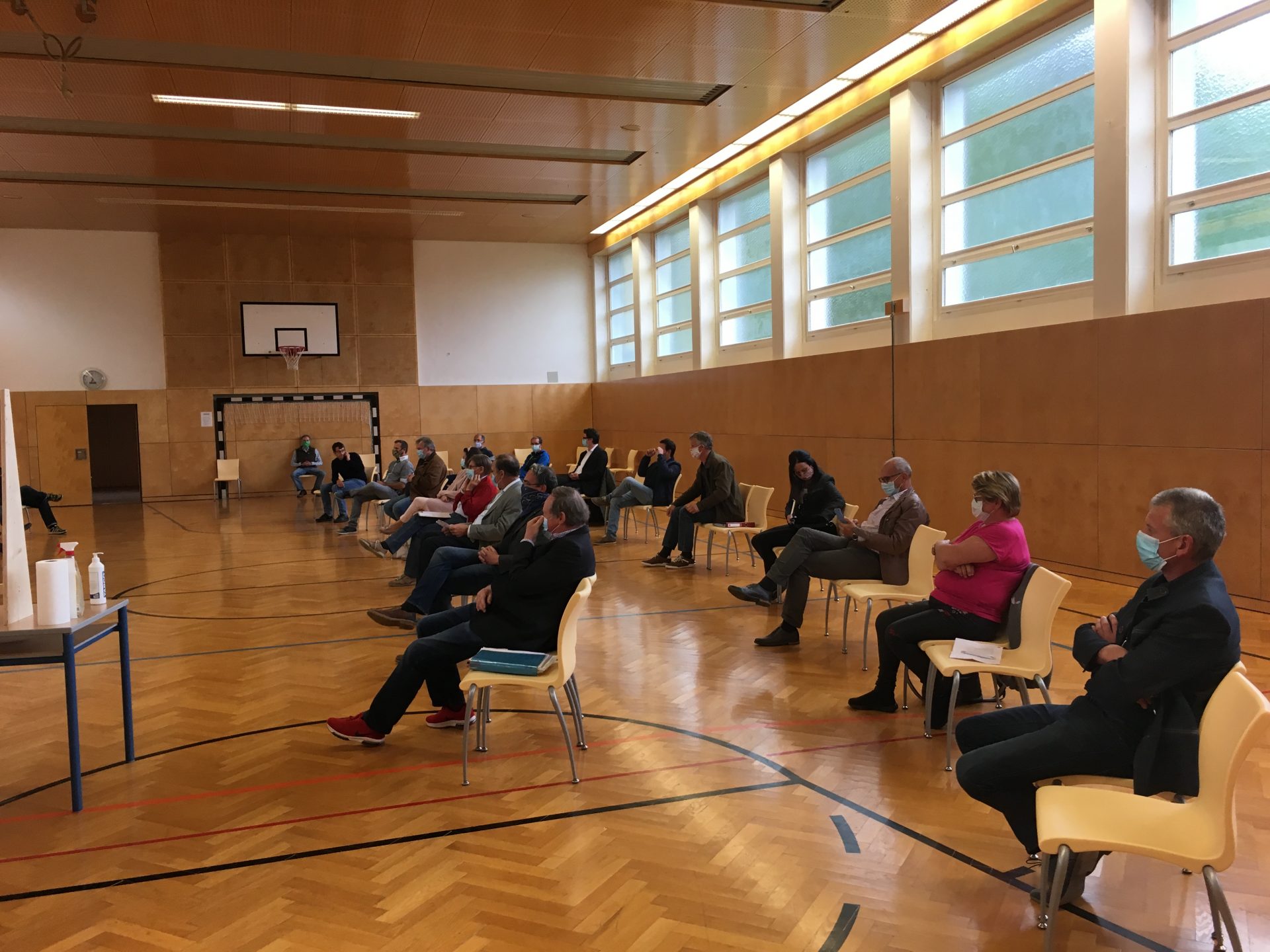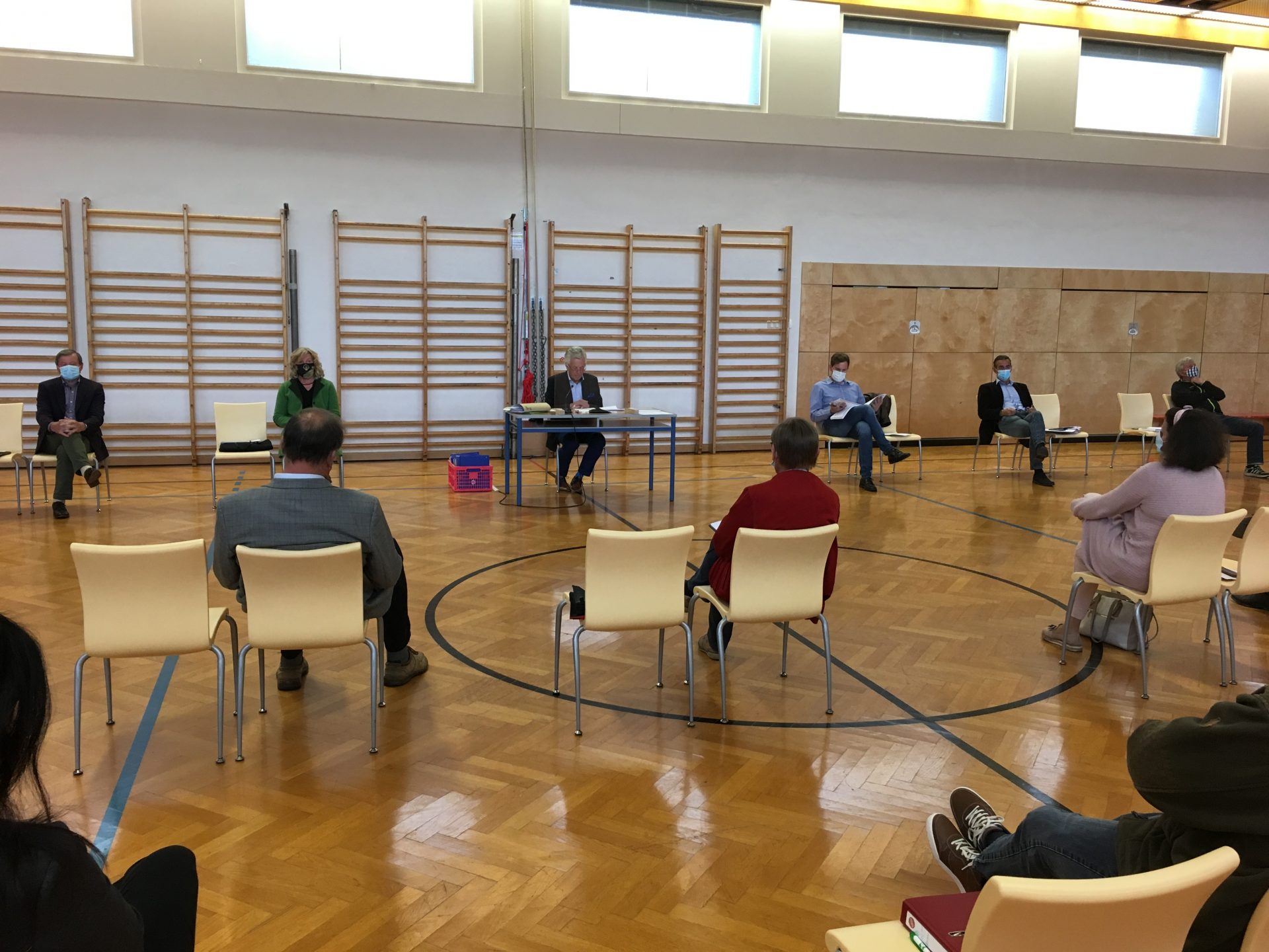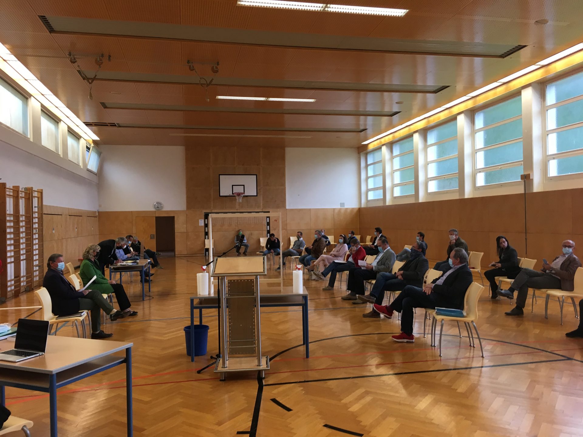 Aufgrund der aktuellen Corona-Situation wurden für die Sitzung entsprechende Sicherheitsvorkehrungen getroffen: die Sitzung fand im Turnsaal der Neuen Mittelschule statt. Die Mandatare kamen mit Mund- und Nasenschutz..