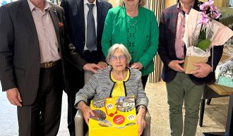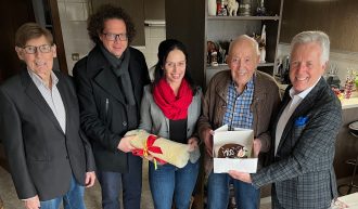 Der Moosburger Anton Kanatschnig feierte am 15. Februar bei bester Gesundheit seinen 100. Geburtstag. „Ich freue mich sehr, dass es Anton Kanatschnig so gut geht. Das ist wirklich beeindruckend. Er ist aktiv und hat noch immer einen gesunden Humor,“ sagte Bürgermeister Herbert Gaggl, der gemeinsam mit Vzbgm Astrid Brunner, Vzbgm Roland Gruber und GR Heinz Brunner gratulierte. Als kleine Geburtstagsüberraschungen wurde eine Torte und ein Lammfellkissen überreicht.