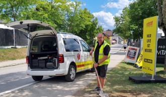 Auch wenn auf der Schlosswiese Bühnen, Technik und Absperrungen weiterhin das Bild für die zahlreichen Konzerte prägen, ist das Cafe Schlosswiese „Taste of Harmony“ für Besucher geöffnet und lädt zum Genießen und Verweilen ein. Um den Zugang noch komfortabler und vor allem barrierefrei zu gestalten, wird aktuell unter der Leitung von Bauhofleiter Hermann Koraschnig die Zufahrt zum Café neu gepflastert und asphaltiert. Damit ist das beliebte Ausflugsziel künftig auch für Menschen mi…