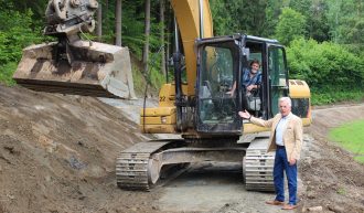 Die Angererhofstraße wurde aufgrund starker Regenfälle teilweise unterspült und es drohte die Gefahr von Rutschungen. Die Marktgemeinde Moosburg hat sofort reagiert und ein Konzept für die Sanierung ausgearbeitet. „Gemeinsam mit den betroffenen Grundeigentümern Rudi Sagmeister und Pfarre Moosburg konnte eine sehr gute Lösung gefunden werden“, informiert Bürgermeister Herbert Gaggl. „Die Sanierungsarbeiten sind vor der Fertigstellung und die Straße wird wieder sicher befahrbar…
