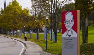 Im Rahmen des Projektes zumglueck.jetzt wurde am 23. Oktober die Galerie der Gedanken eröffnet. Die Galerie, die im Zentrum von Moosburg – entlang der Feldkirchner Straße, errichtet wurde, zeigt „Kluge Köpfe“, die vom Architekten und Künstler Prof. Harald Schreiber gezeichnet wurden. Den Köpfen sind Zitate zugeordnet, die von diesen Persönlichkeiten stammen und zum Nachdenken anregen sollen. Das Projekt zumglueck.jetzt wird vom Theologen und Psychotherapeuten Dr. Arnold Mettni…
