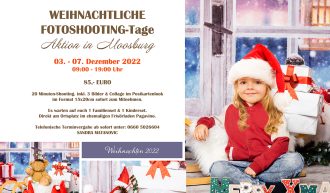 In Moosburg finden von Samstag 03. – Mittwoch 07. Dezember 2022 immer zwischen 09:00-19:00 Uhr Fotoshooting-Tage statt. „20 Minuten Shooting inkl. 3 Bilder & Collage im Postkartenlook im Format 15x20cm sofort zum Mitnehmen“, informiert Sandra Matanovic. „Es warten auf euch 1 Familienset & 1 Kinderset. Direkt am Ortsplatz im ehemaligen Frisörladen Pagavino“, so die Fotografin. Telefonische Terminvergabe ab sofort unter: 0660/5026604 Berufsfotografin Sandra Matanov…