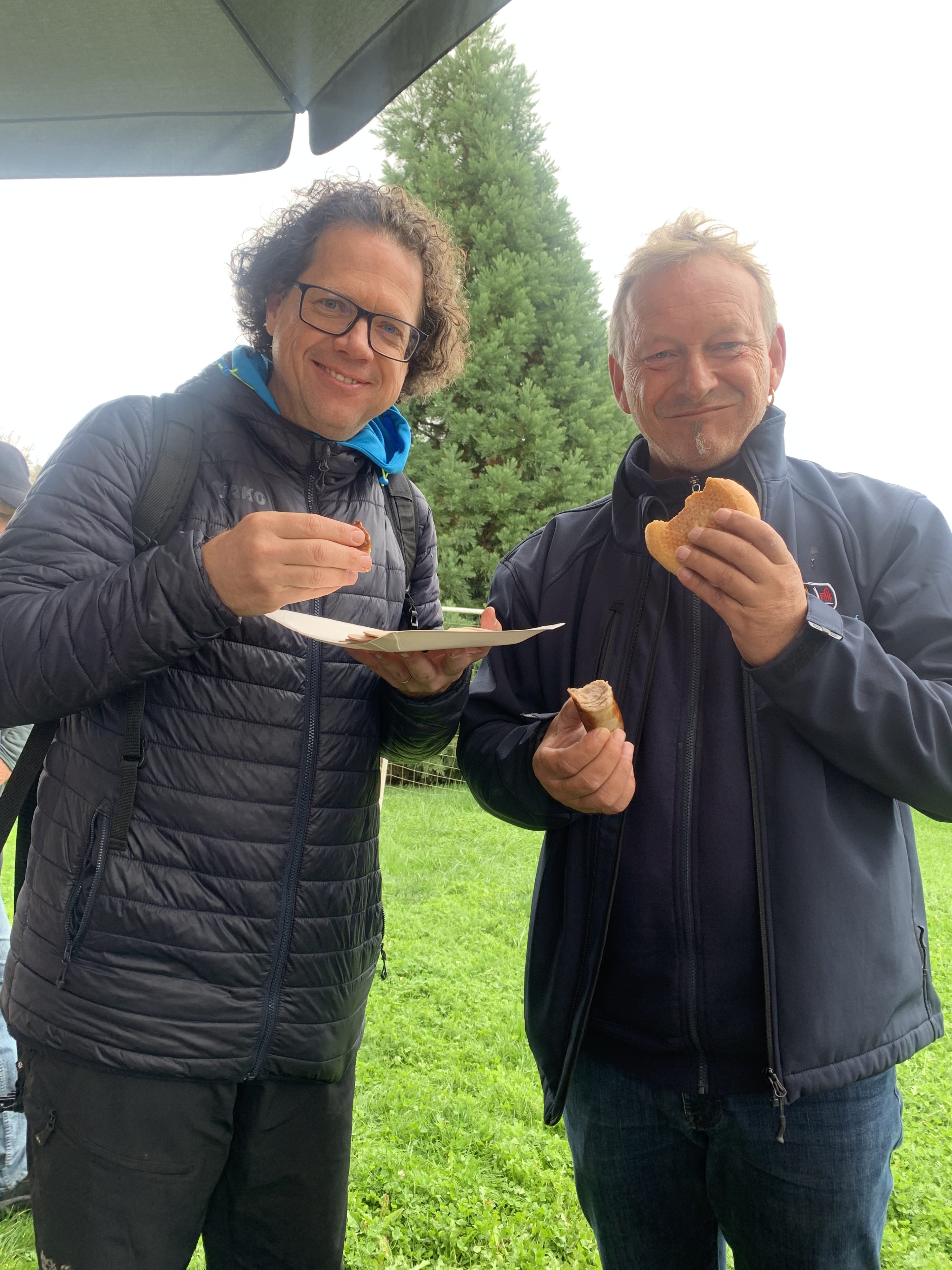 Beim Reiterhof Binz am Pirkhof fand die Wanderung ihren Abschluss bei einer Grillerei von Pritschitz Aktiv sowie Kuchen und Kaffee von Karin Binz. Für die musikalische Unterhaltung sorgten die „Zommgspütn“, und auch der langsam einsetztende Regen tat der guten Stimmung keinen Abbruch. Vizebürgermeister Roland Gruber und der Krumpendorfer Bürgermeister Gernot Bürger bedankten sich dort auch bei allen Wanderfreunden für ihre Teilnahme.
