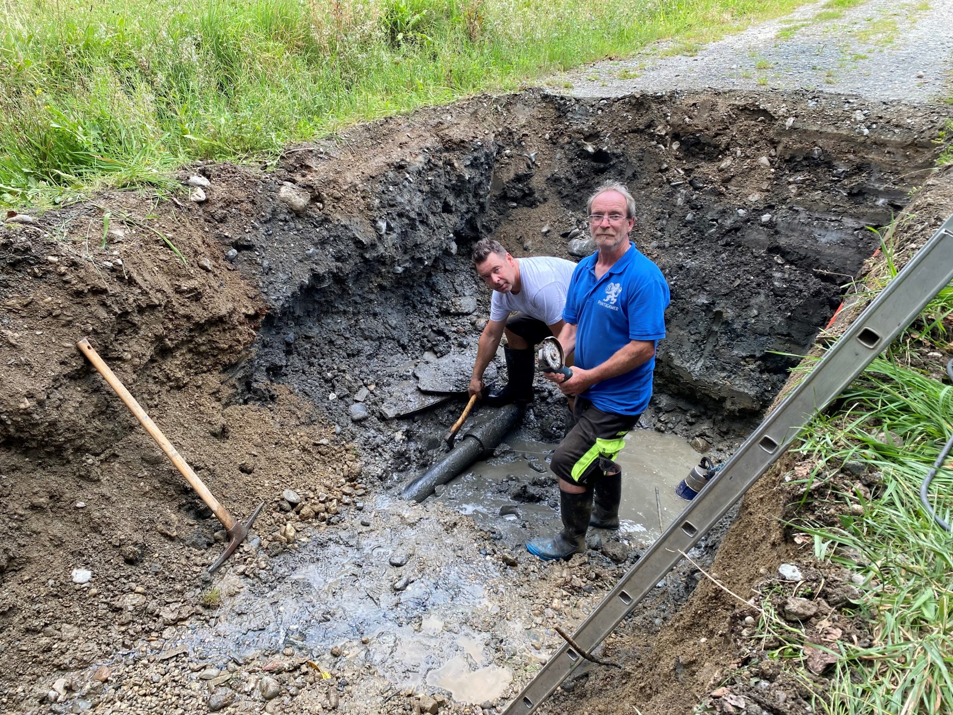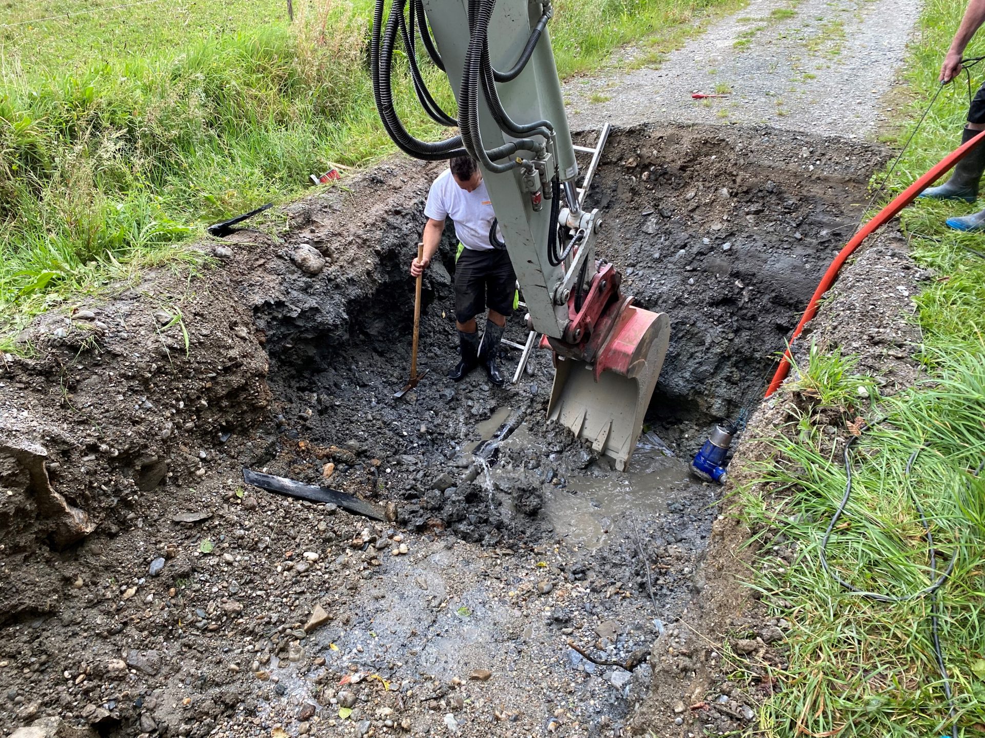Binnen weniger Minuten waren die Mitarbeiter vor Ort und reparierten die schadhafte Stelle. „Ich bedanke mich bei meinen Mitarbeitern für den tollen Einsatz. Andreas Kölz, Wilhelm Klatzer,  Wassermeister Eckhart Sagmeister und die Firma Erdbau Leeb haben hervorragende Arbeit gleistet. Ein besonderer Dank gilt aber auch Fritz Pirker. Durch seine Aufmerksamkeit konnte größerer Schaden abgewendet werden“, sagte Bürgermeister Herbert Gaggl.