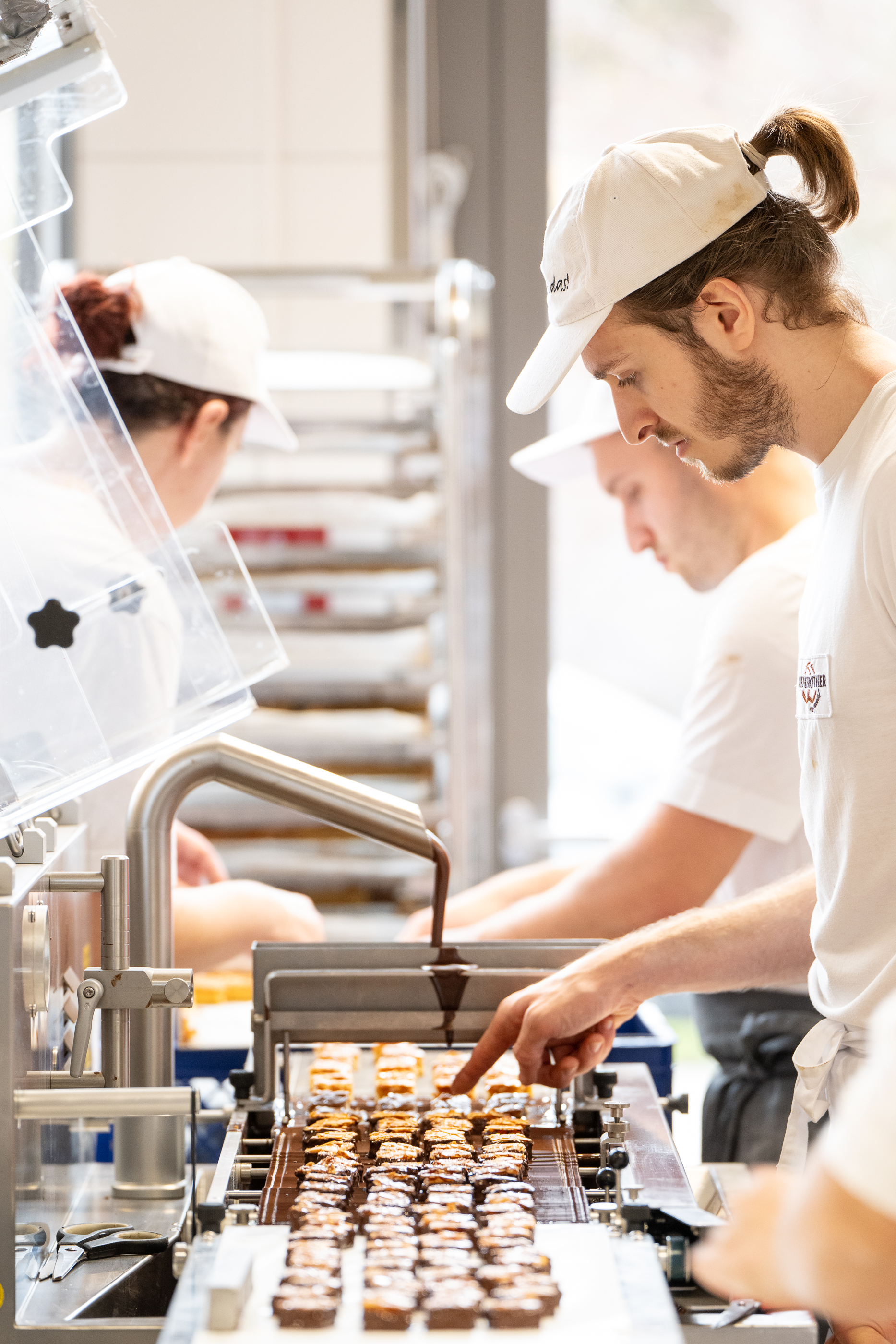 Mitte Oktober war es so weit: Die ersten Konditoren siedeln von Pörtschach nach Moosburg. Innerhalb von nur knapp 4 Wochen sollten alle Maschinen und das gesamte Dreamteam im BROT.HAND.WERK angekommen sein. Eine Herausforderung im besten Fall, ein Nervenkitzel bei durchgehender Aufrechterhaltung der Produktion. Ohne einen einzigen Schließtag wurde dieser logistisch äußerst aufwendige Transfer bewerkstelligt. In rund 1.500 Arbeitsstunden (Fremdfirmen und eigene Mitarbeiter) wurde die gesamte Backstube (Bäckerei, Konditorei und Snäckerei) mit allen Geräten und Maschinen nach Moosburg übersiedelt.